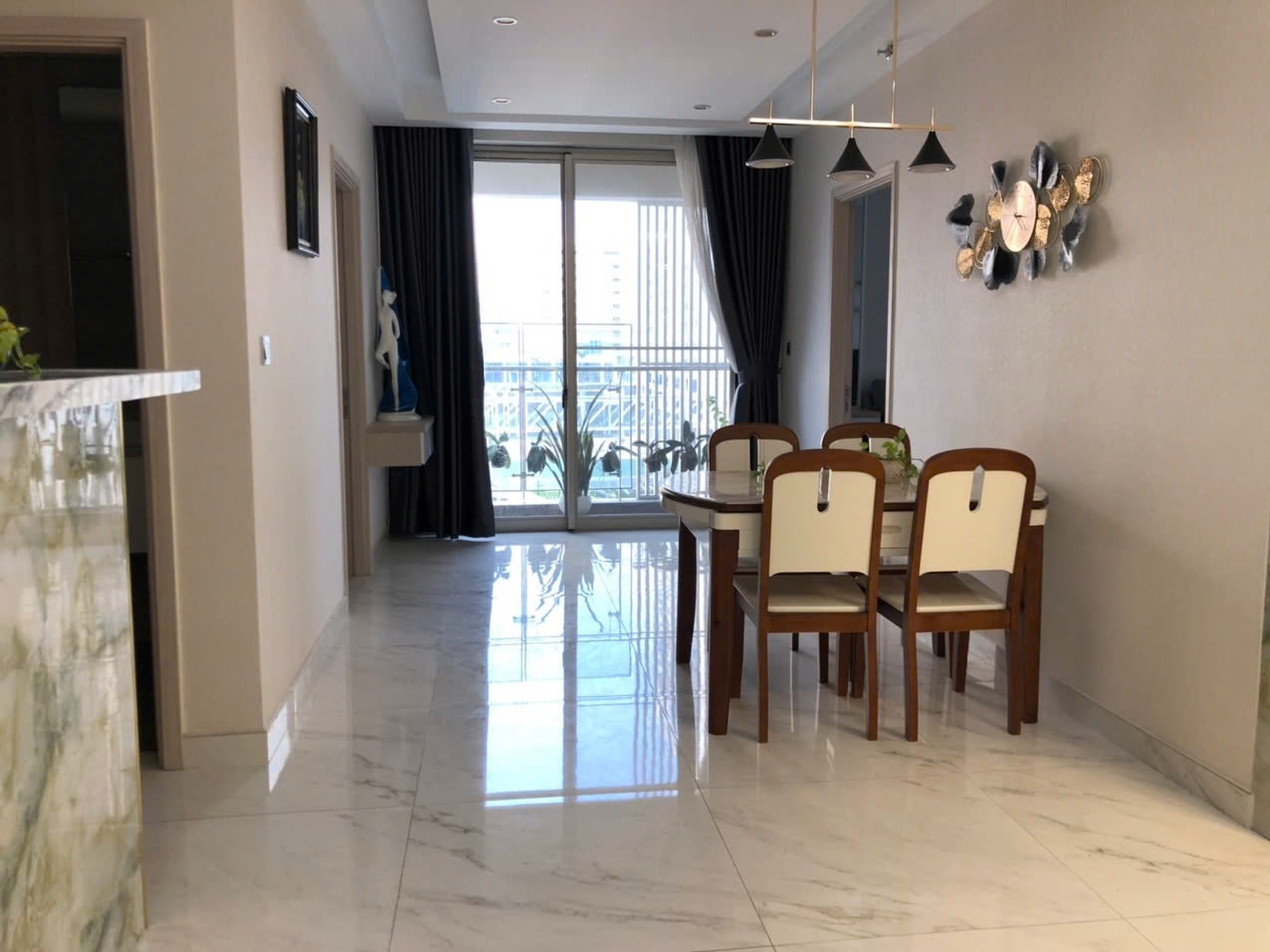 Căn hộ có diện tích 98m², thiết kế 2 phòng ngủ – 2 phòng vệ sinh, là căn góc nên cực kỳ thoáng mát, nhiều ánh sáng tự nhiên và gió trời. Bố cục căn hộ hợp lý, phòng khách rộng rãi, liên thông khu bếp và bàn ăn, tạo cảm giác mở và rất dễ sinh hoạt.
