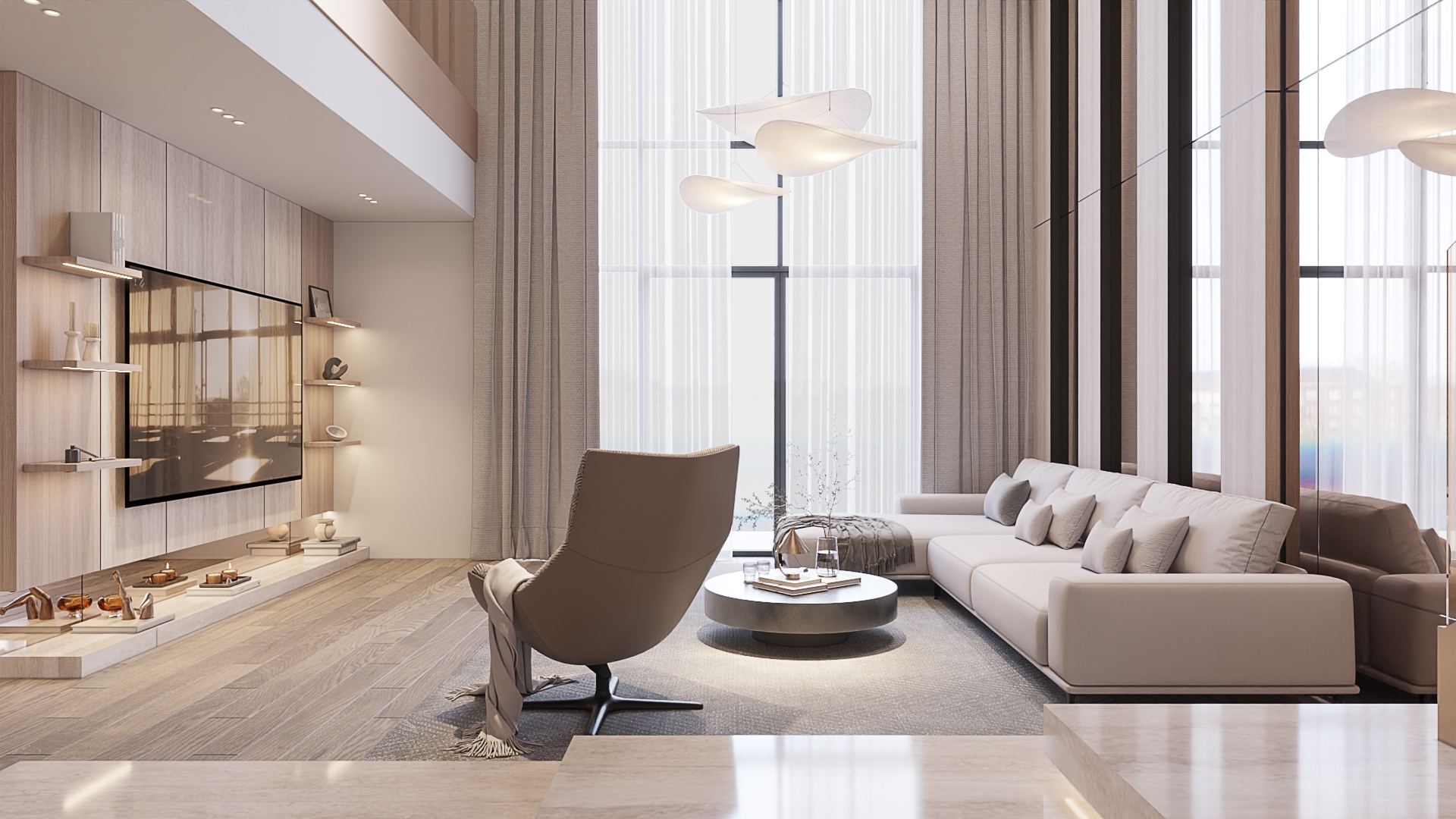 Căn hộ có diện tích xây dựng 432,2 m², diện tích sử dụng 374,3 m², bố cục được thiết kế tối ưu công năng với nhiều không gian sinh hoạt và nghỉ ngơi riêng biệt. Tổng thể căn hộ mang lại cảm giác như một biệt thự trên cao, vừa sang trọng vừa thoáng đãng.