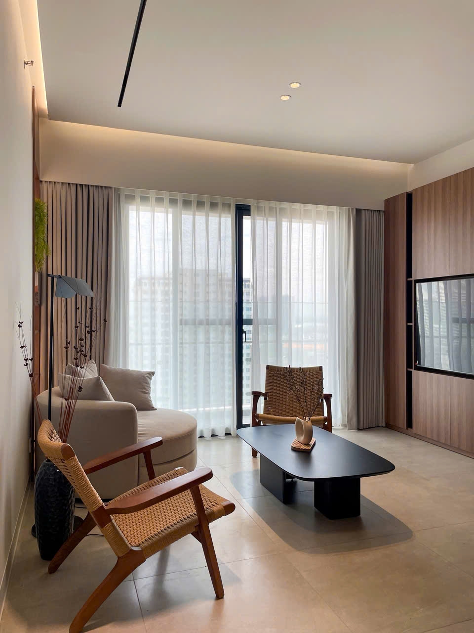 Căn hộ được thiết kế thông minh với bố cục khoa học, tối ưu diện tích và ánh sáng tự nhiên. Phòng khách rộng rãi, thoáng đãng, kết nối hài hòa với khu vực bếp và bàn ăn, tạo nên không gian sinh hoạt chung ấm cúng nhưng vẫn sang trọng. Phòng làm việc được bố trí riêng tư, yên tĩnh, phù hợp cho làm việc tại nhà, học tập hoặc có thể linh hoạt sử dụng làm phòng đa năng theo nhu cầu.