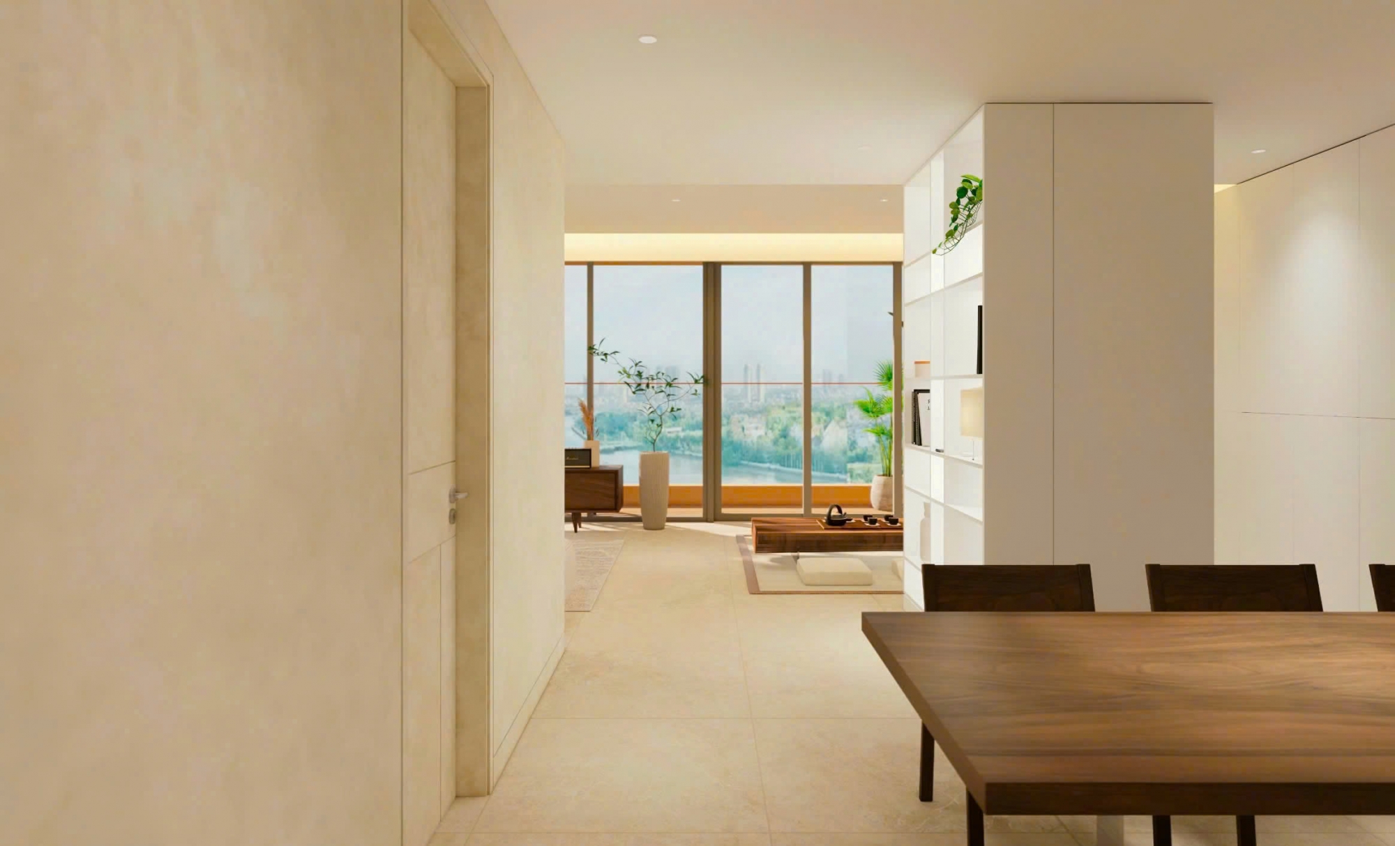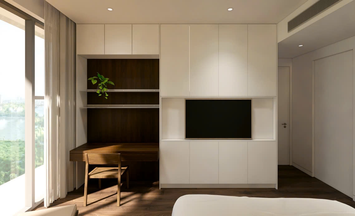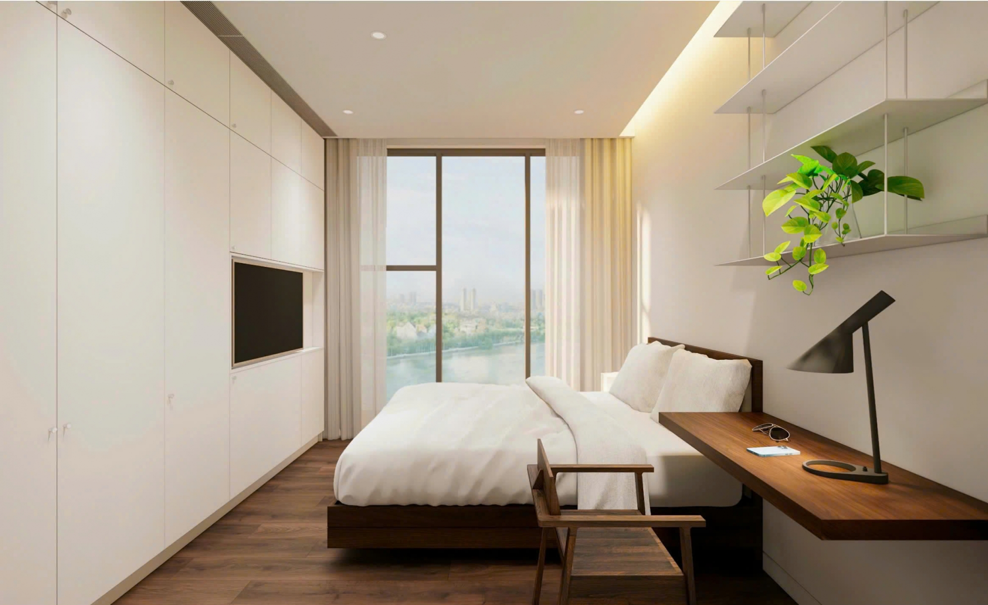 Từ phòng khách và các phòng ngủ, cư dân có thể chiêm ngưỡng khung cảnh sông nước thơ mộng, đặc biệt đẹp vào buổi sáng và hoàng hôn. Ban công rộng rãi là nơi lý tưởng để thư giãn, thưởng trà hoặc tận hưởng không khí mát lành mỗi ngày.