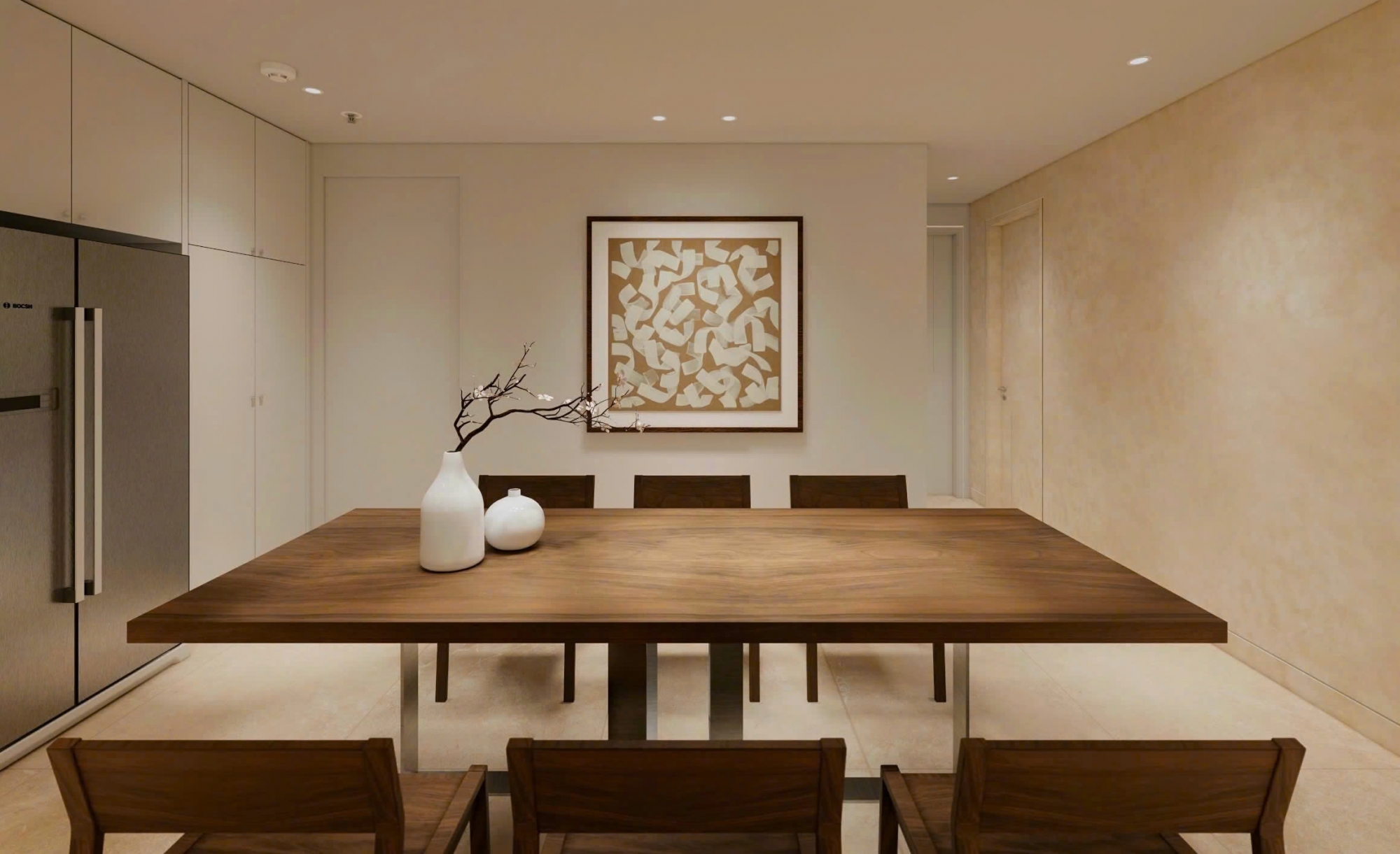 Căn hộ sở hữu thiết kế hiện đại, tinh tế với diện tích rộng rãi, bố trí hợp lý gồm 3 phòng ngủ riêng biệt, phòng khách lớn tràn ngập ánh sáng tự nhiên, kết nối hài hòa với khu bếp mở và khu vực bàn ăn sang trọng. Toàn bộ căn hộ được hoàn thiện và trang bị full nội thất cao cấp, sử dụng các vật liệu và thiết bị chất lượng cao, đảm bảo sự tiện nghi và thẩm mỹ tối đa cho người ở.