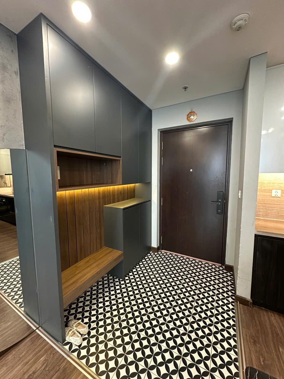 Căn hộ được trang bị đầy đủ nội thất, phong cách trẻ trung – tinh tế, màu sắc hài hòa, chất lượng tốt. Bếp đầy đủ thiết bị, phòng ngủ riêng tư, cửa kính lớn đón ánh sáng tự nhiên, mang lại cảm giác dễ chịu và thoải mái.