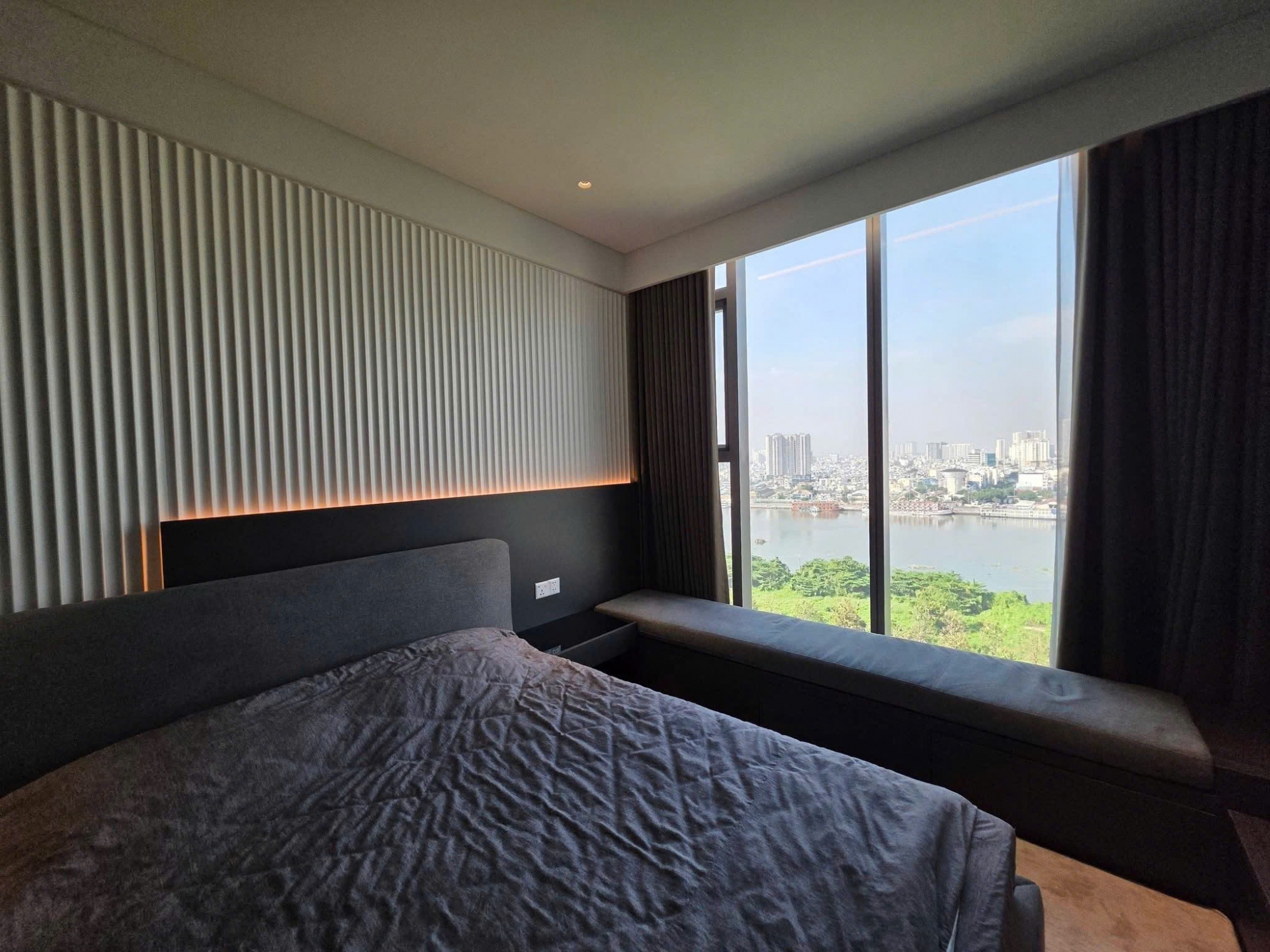 Điểm nổi bật của căn hộ là ban công rộng với tầm nhìn trực diện ra sông Sài Gòn, mang lại cảm giác thư giãn và thoáng đãng. Đây là nơi lý tưởng để tận hưởng không khí trong lành, uống cà phê buổi sáng hoặc ngắm cảnh thành phố về đêm. Khu bếp được thiết kế gọn gàng, hiện đại và trang bị đầy đủ thiết bị cần thiết cho sinh hoạt hằng ngày.