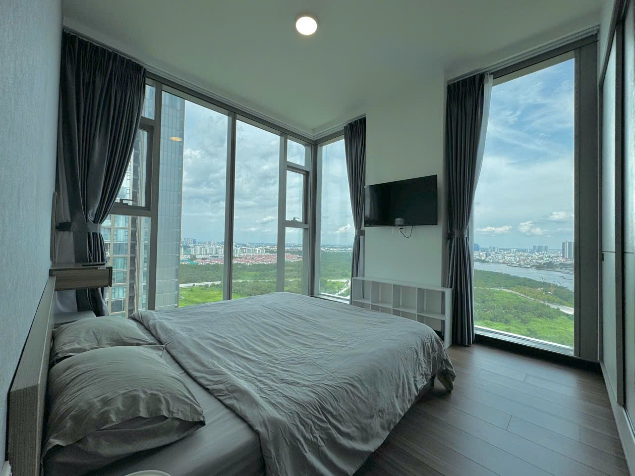 Căn hộ được thiết kế theo phong cách hiện đại, tinh tế, bố cục hợp lý với phòng khách rộng rãi, kết nối liền mạch cùng khu vực bếp và bàn ăn. Hệ cửa kính lớn giúp đón trọn ánh sáng tự nhiên, mở ra view sông Sài Gòn thoáng mát, mang lại cảm giác thư giãn sau ngày làm việc.