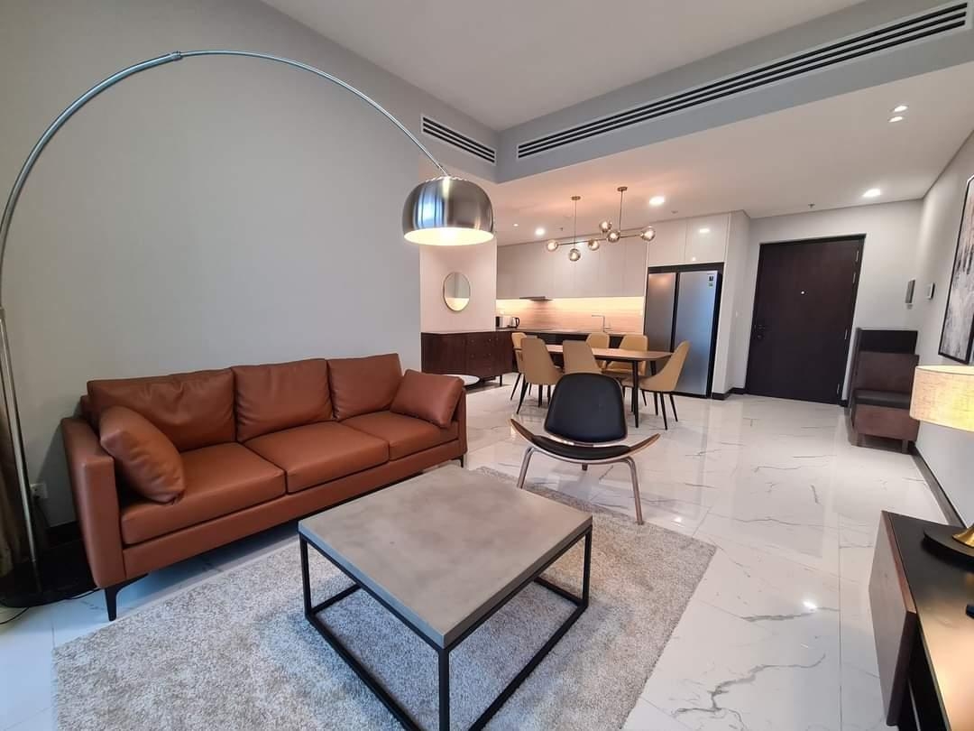 Căn hộ được trang bị đầy đủ nội thất sang trọng, phong cách hiện đại, tinh tế. Tất cả nội thất và thiết bị đều được lựa chọn kỹ lưỡng, đảm bảo tính thẩm mỹ cao và sự tiện nghi trong sinh hoạt hằng ngày. Khách thuê chỉ cần xách vali vào ở ngay.