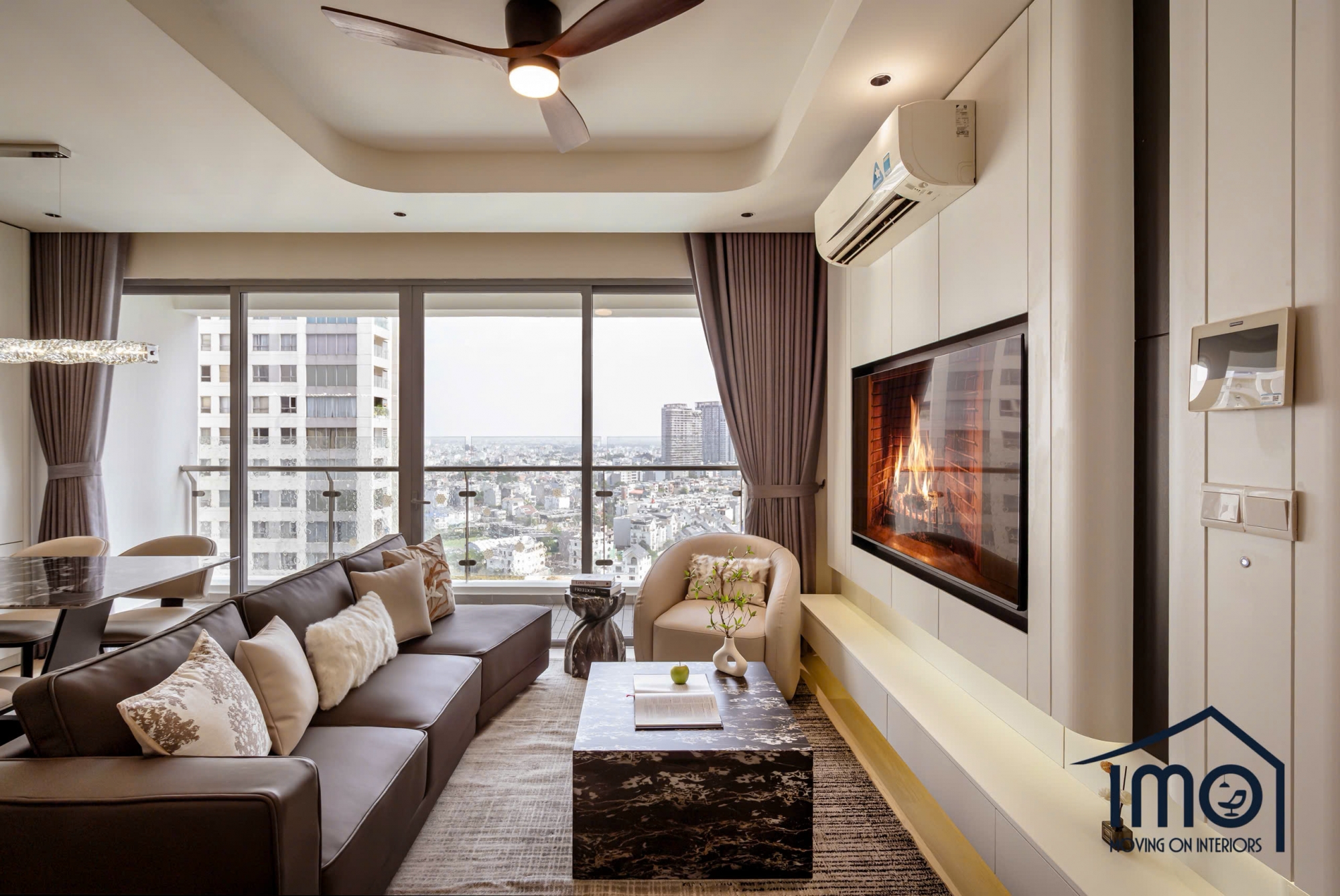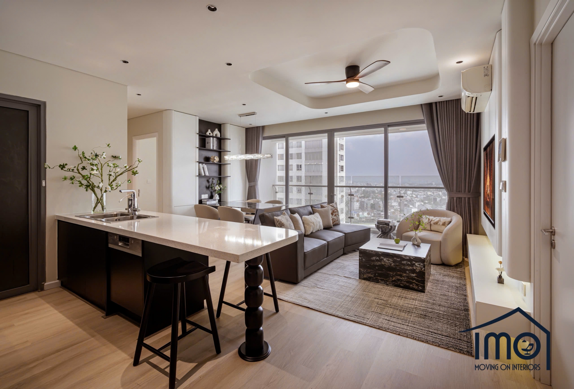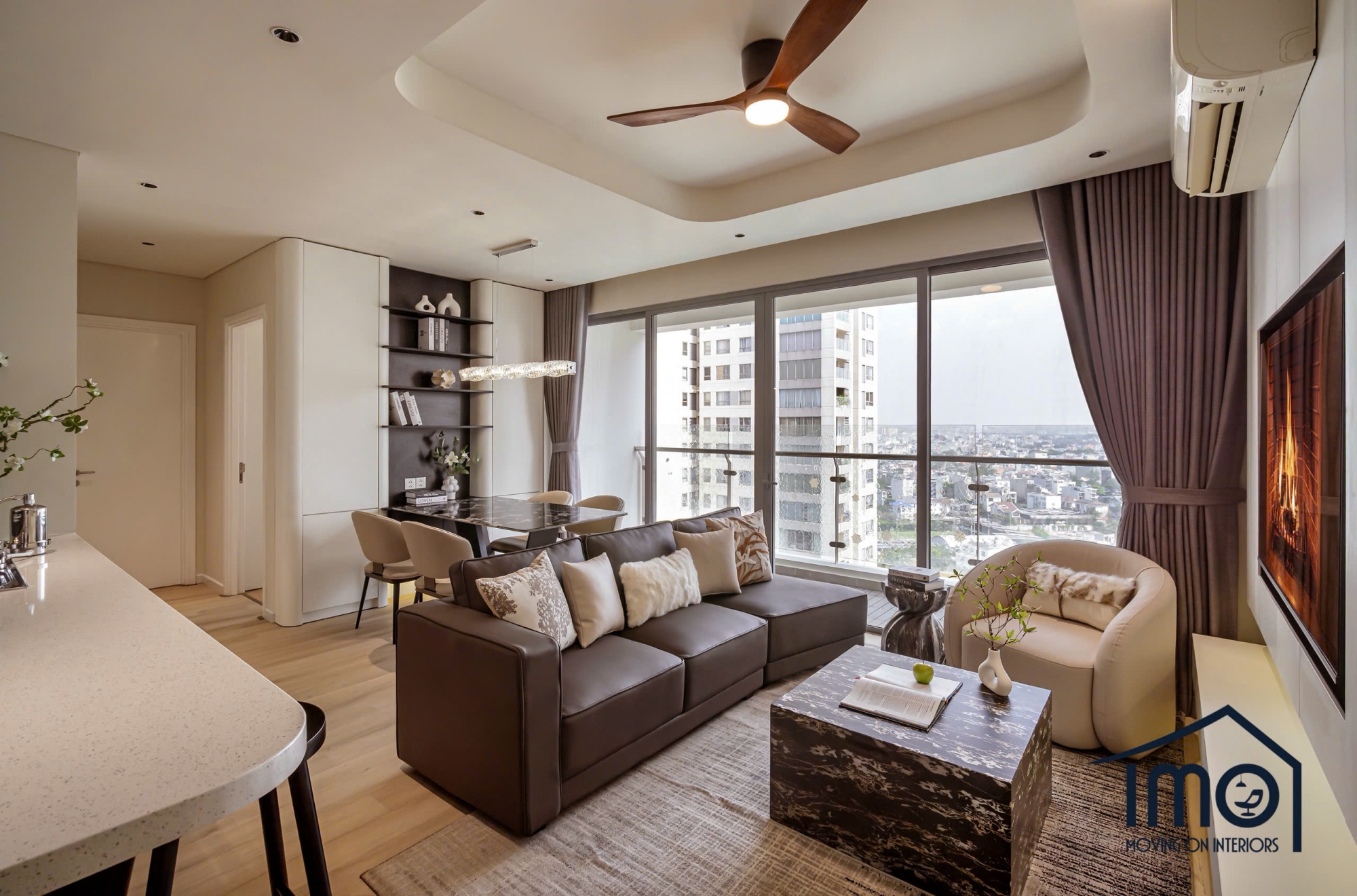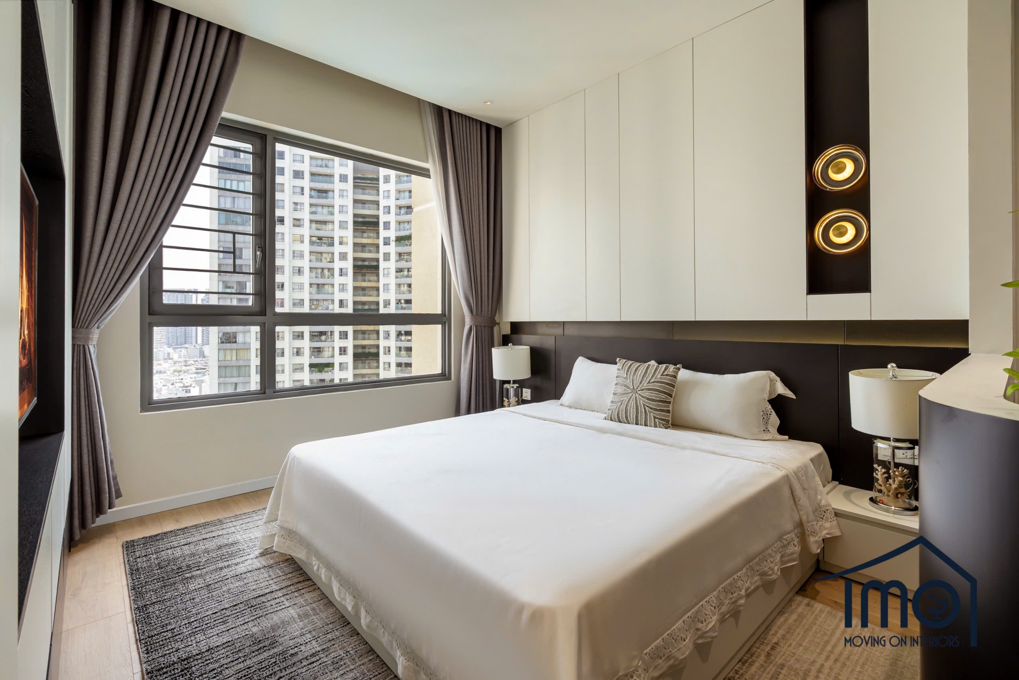 Toàn bộ nội thất được trang bị mới 100%, theo phong cách hiện đại với tông màu trang nhã, đường nét tinh gọn và vật liệu chất lượng. Phòng khách rộng rãi, đón nhiều ánh sáng tự nhiên nhờ hệ cửa kính lớn và ban công thoáng mát. Khu bếp được hoàn thiện đầy đủ thiết bị, thuận tiện cho sinh hoạt hằng ngày. Phòng ngủ yên tĩnh, thoải mái; phòng tắm sạch sẽ, thiết kế gọn gàng và tiện nghi.