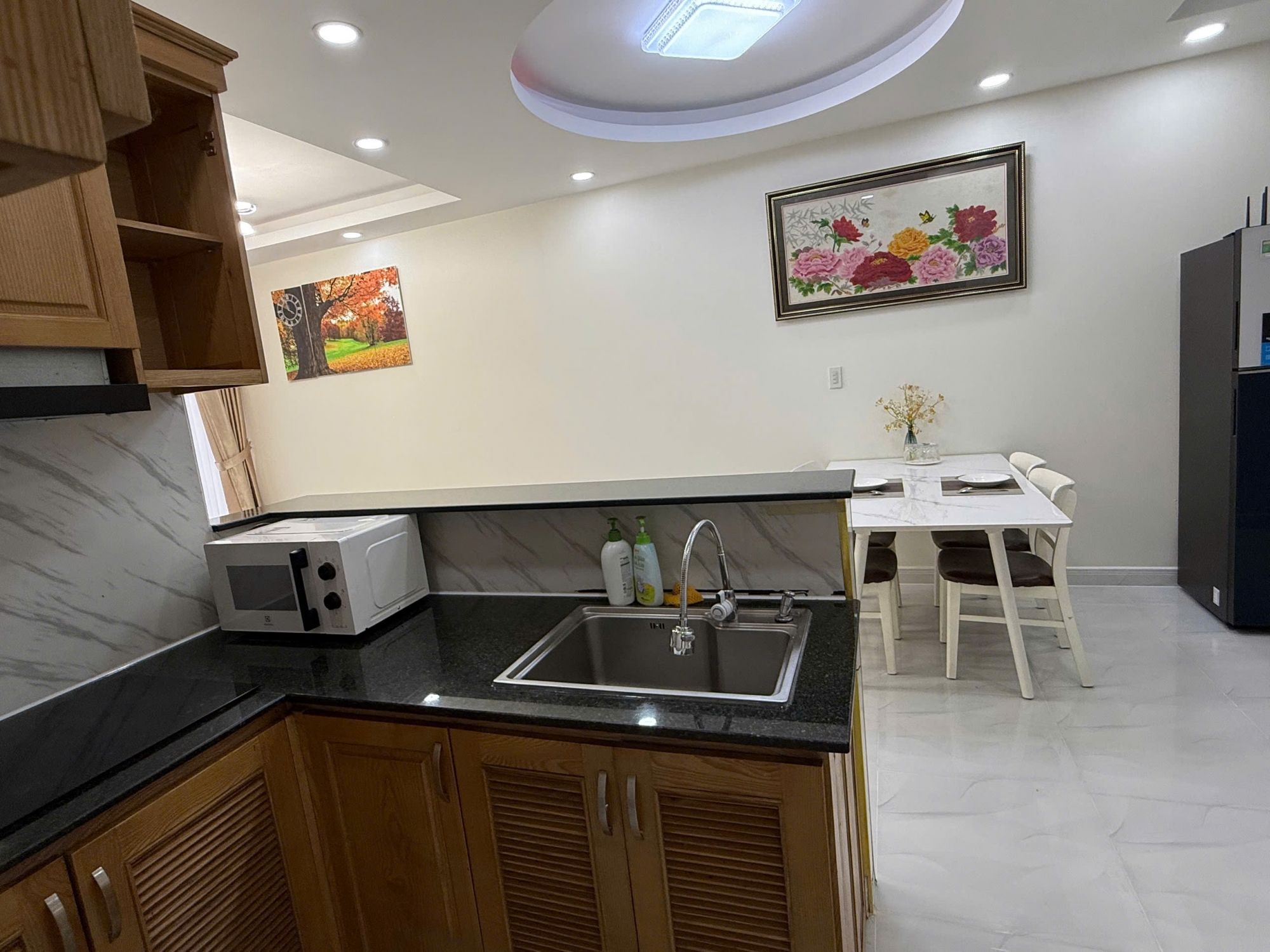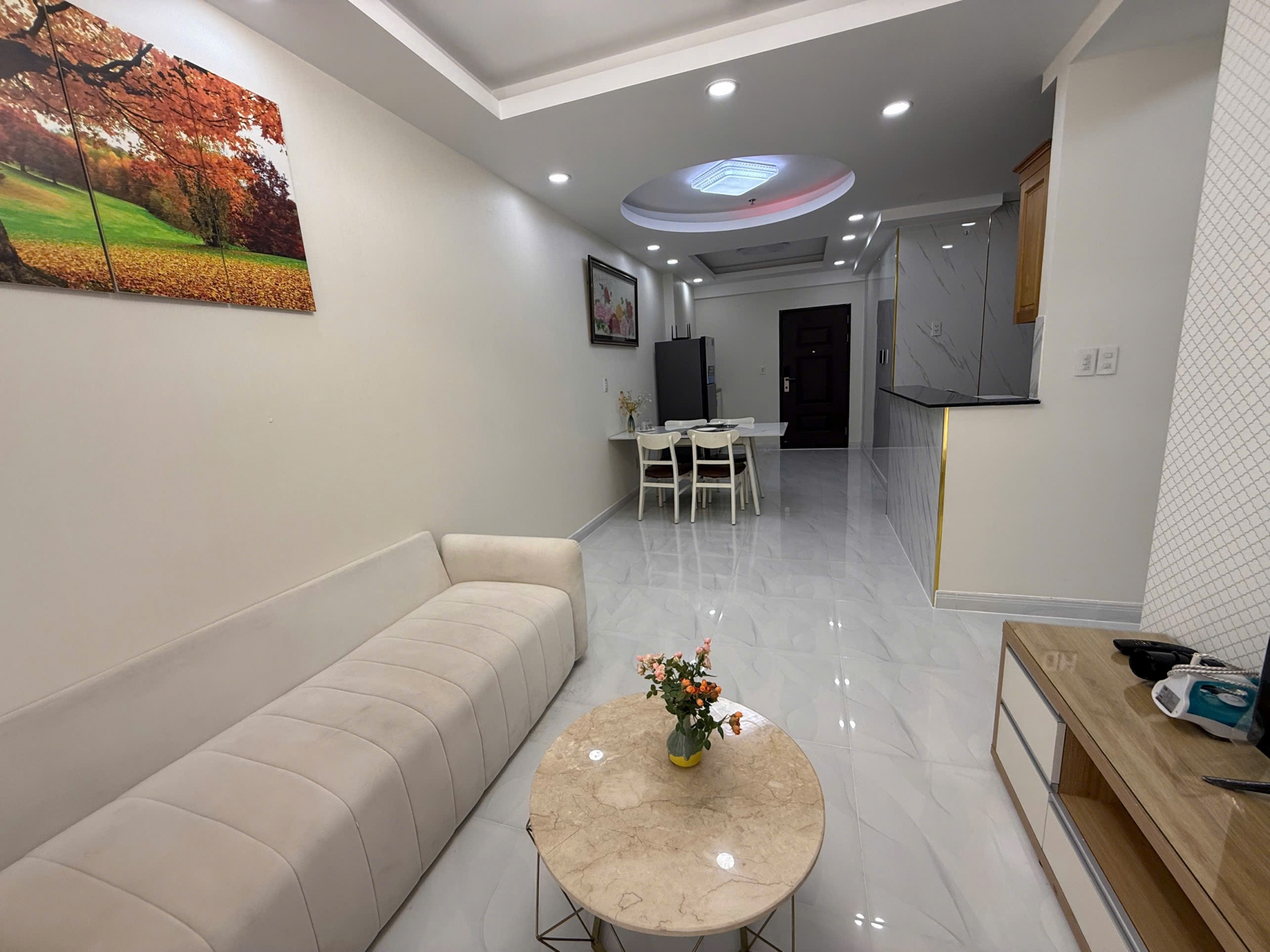 Toàn bộ căn hộ đã được trang bị đầy đủ nội thất, phong cách trang nhã, màu sắc trung tính, dễ sử dụng. Bếp gọn gàng với thiết bị cần thiết, phòng ngủ yên tĩnh, riêng tư, sẵn sàng dọn vào ở ngay mà không cần sắm thêm.