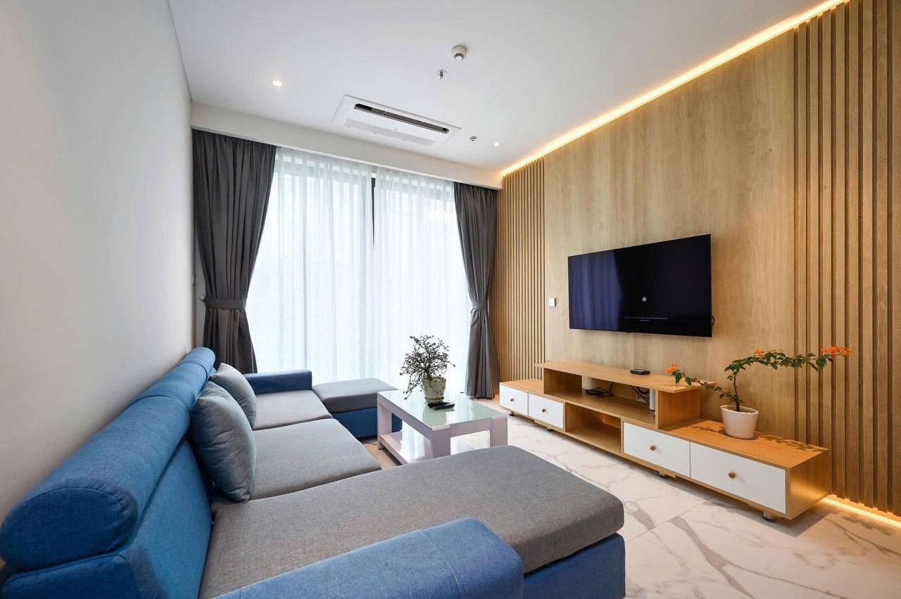 Nội thất được trang bị đầy đủ theo phong cách hiện đại với tông màu hài hòa giúp căn hộ trở nên ấm cúng và tiện nghi Khu bếp thiết kế gọn gàng tích hợp đầy đủ thiết bị cần thiết phù hợp cho sinh hoạt hằng ngày
