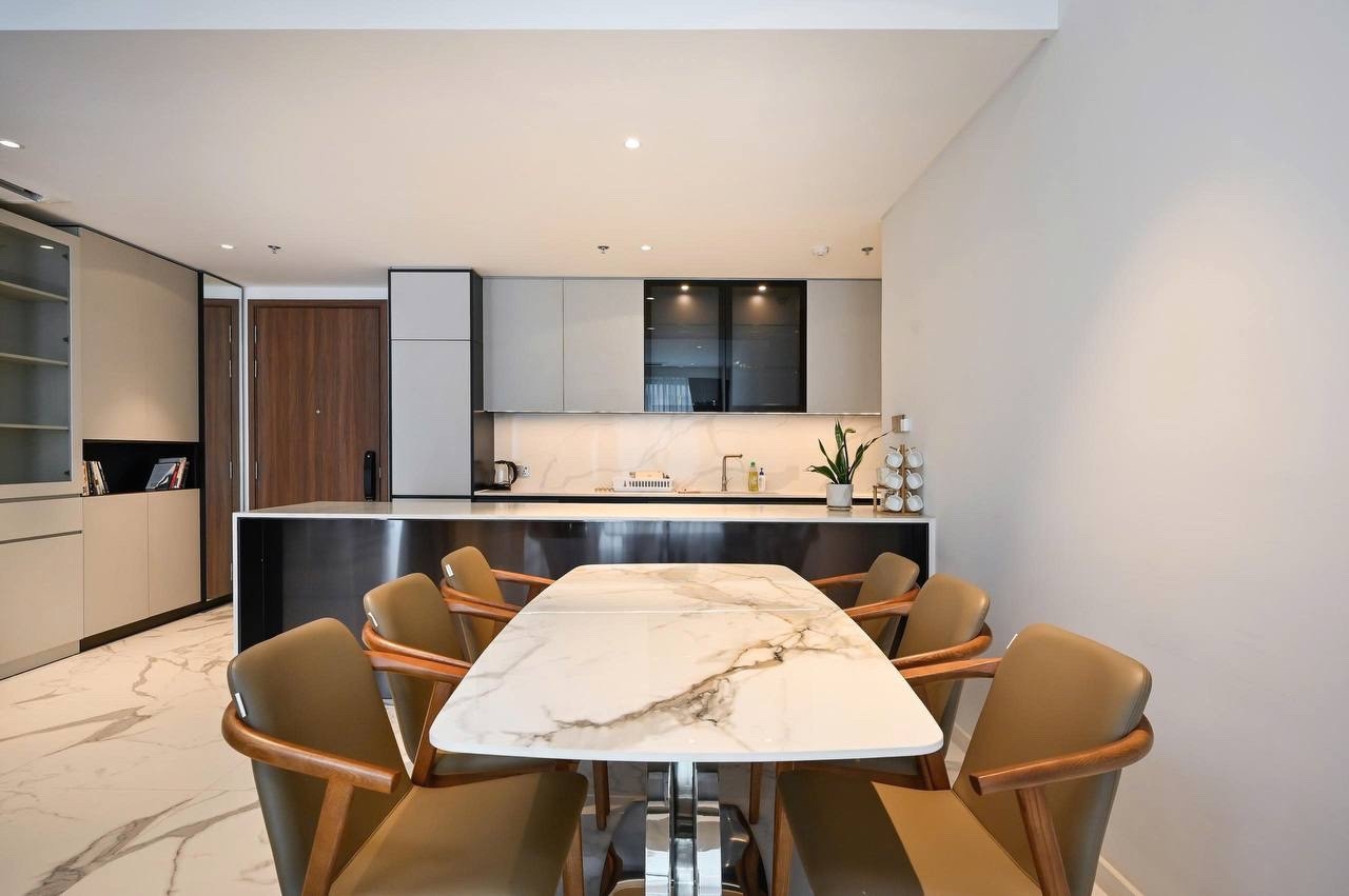 Căn hộ nằm tại phân khu Crest thuộc The Metropole Thủ Thiêm với thiết kế hiện đại và không gian sống rộng rãi Phòng khách kết nối ban công lớn mang lại tầm nhìn trực diện sông Sài Gòn và cầu Ba Son tạo cảm giác thoáng đãng và sang trọng