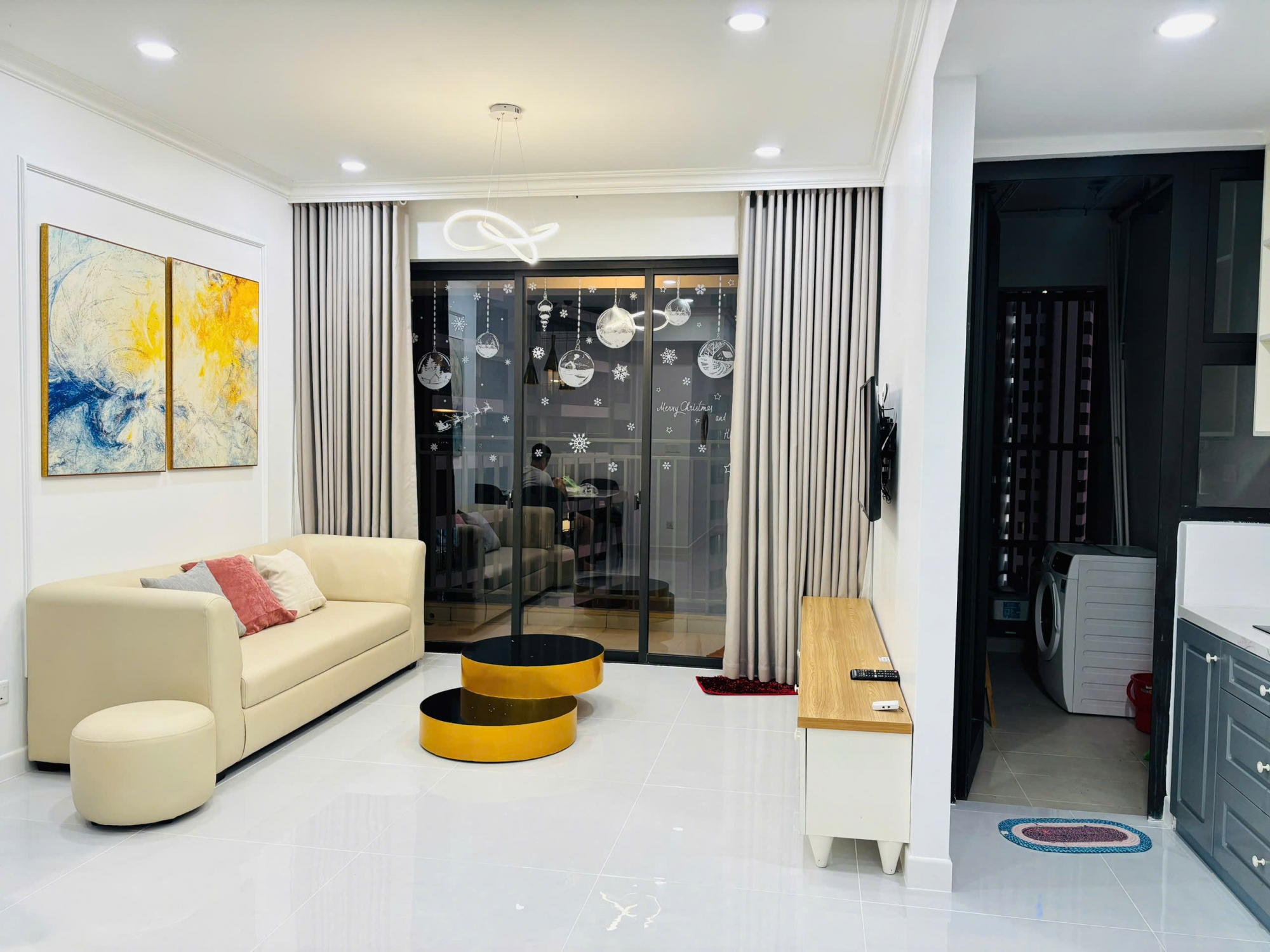 Căn hộ thiết kế 2 phòng ngủ – 2 phòng vệ sinh, bố cục hợp lý, tối ưu không gian sinh hoạt và ánh sáng tự nhiên. Phòng khách rộng rãi, kết nối trực tiếp với ban công kính lớn, mang lại tầm nhìn đẹp, thoáng đãng, tạo cảm giác dễ chịu và thư giãn mỗi ngày.