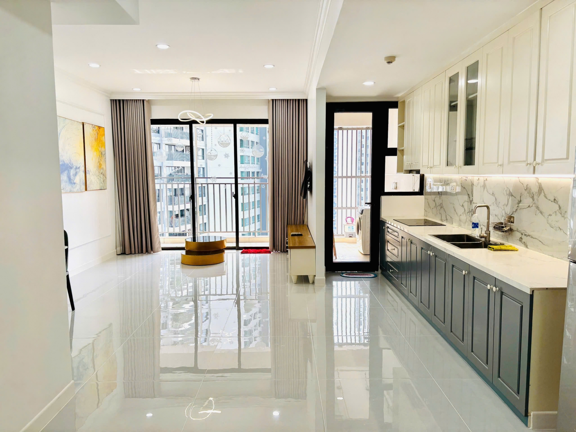 Toàn bộ căn hộ được trang bị full nội thất hiện đại, gam màu sáng trang nhã, nội thất mới và đồng bộ. Khu bếp gọn gàng, đầy đủ thiết bị cần thiết; phòng ngủ được bố trí ấm cúng, yên tĩnh, phù hợp cho gia đình trẻ, chuyên gia hoặc người nước ngoài sinh sống lâu dài.