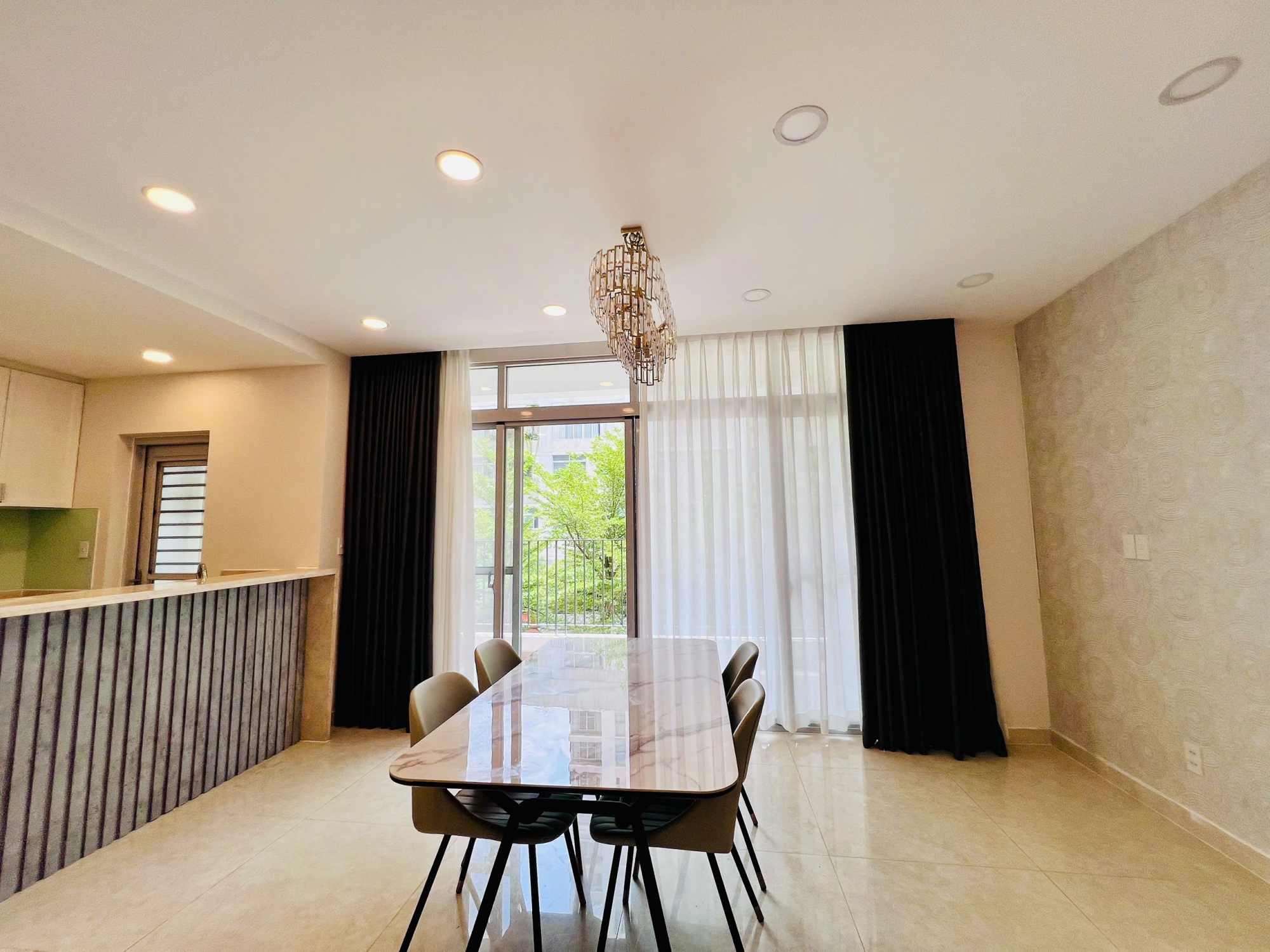 Nội thất được trang bị đầy đủ theo phong cách hiện đại Khu bếp rộng rãi tiện nghi phù hợp cho gia đình sinh hoạt hằng ngày Ba phòng ngủ được bố trí hợp lý đảm bảo sự riêng tư trong đó phòng tắm chính có bồn tắm nằm tạo không gian thư giãn thoải mái