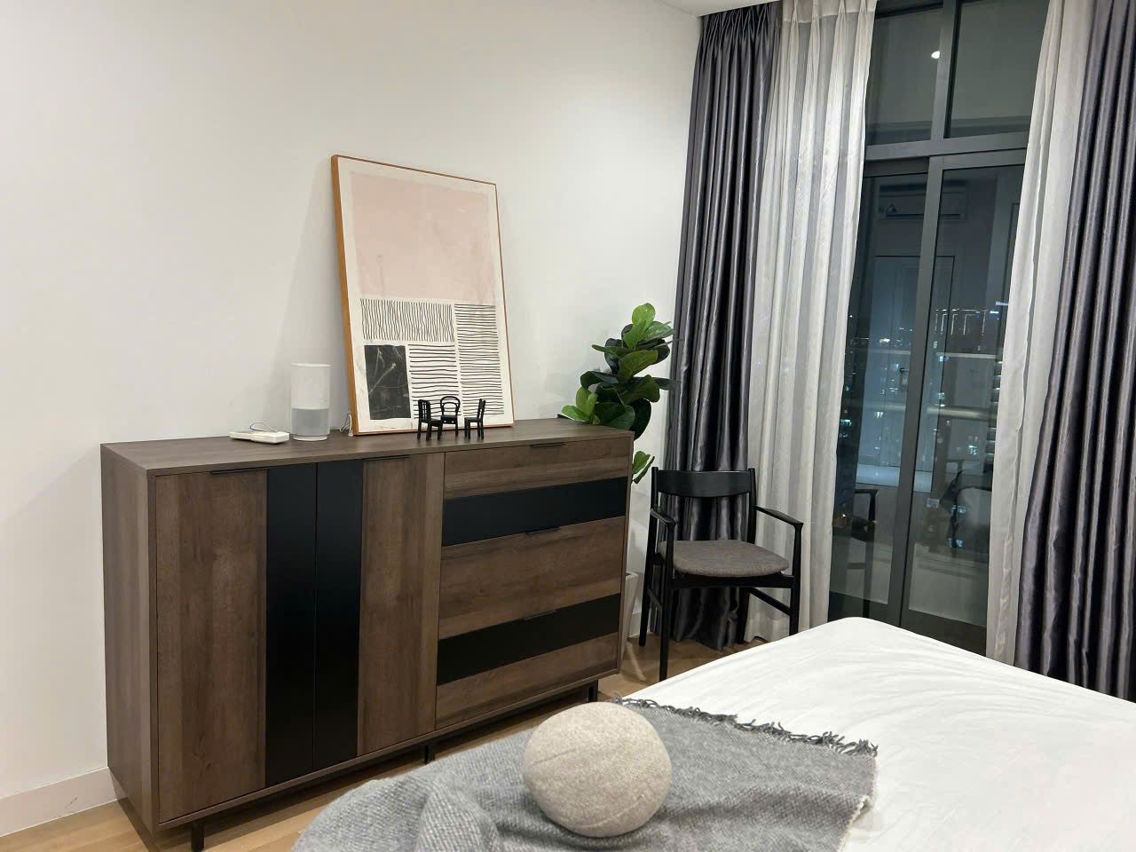 The unit comes fully furnished with tasteful and well-coordinated interiors. The layout seamlessly integrates the living area, dining space, kitchen, and bedroom, making it ideal for long-term tenants or expatriates seeking a comfortable home.