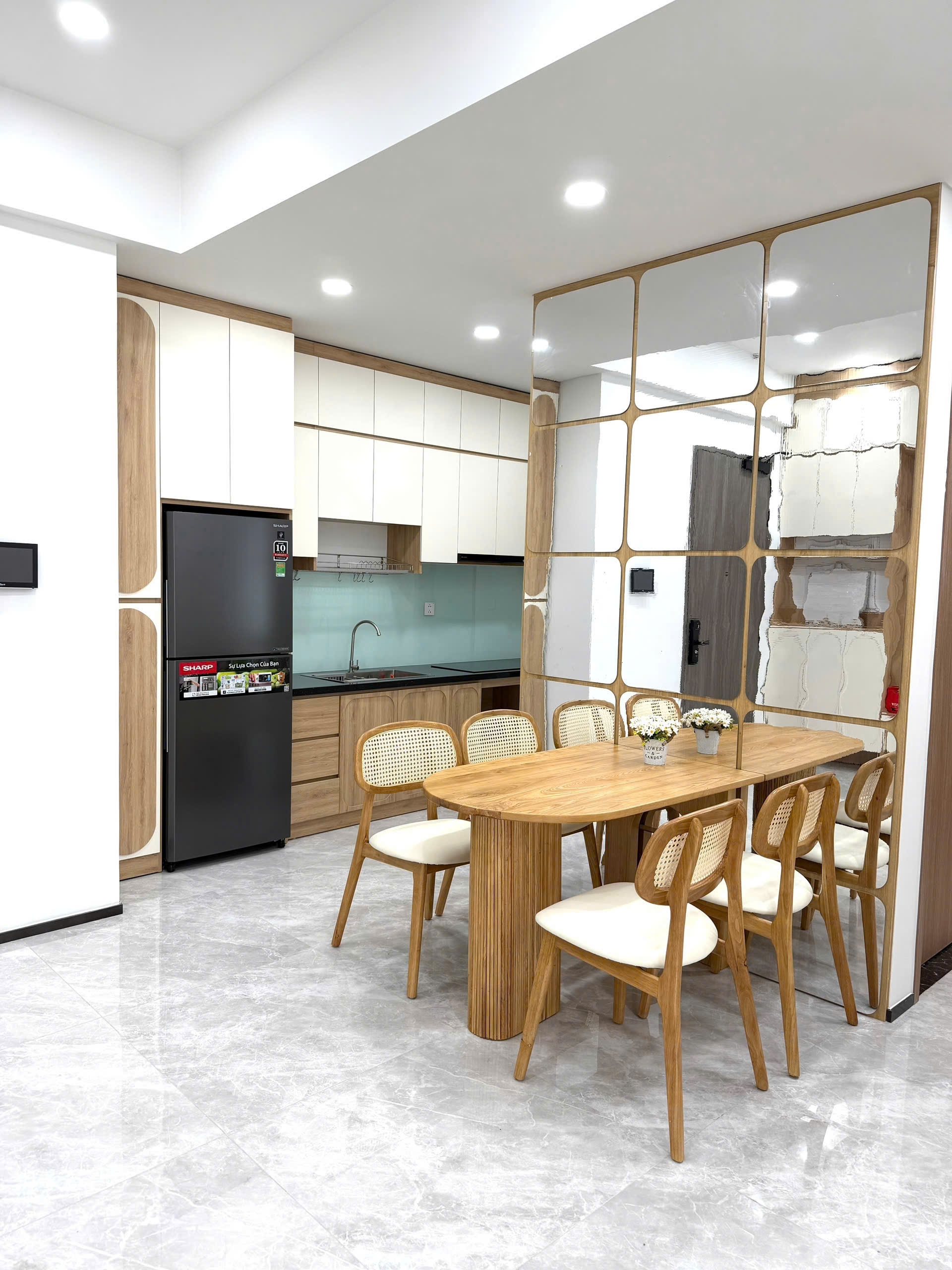 The unit comes fully furnished with brand new modern furniture, carefully selected to create a comfortable and elegant living atmosphere. The kitchen area is neatly arranged and fully equipped, providing convenience for daily cooking and dining.