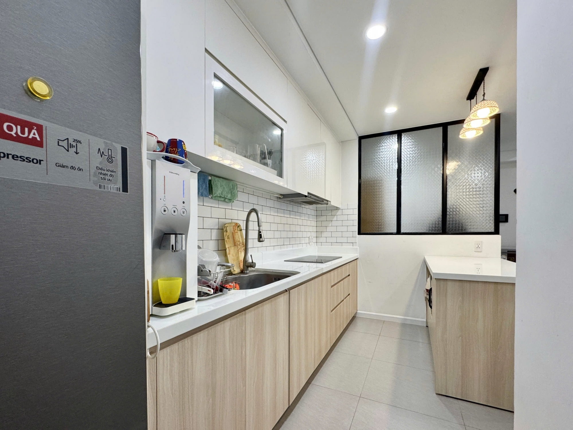 Căn hộ đang để nội thất cơ bản, bao gồm hệ thống bếp, máy lạnh, thiết bị vệ sinh và các hạng mục cố định – rất phù hợp cho khách hàng muốn tự thiết kế và trang trí theo phong cách riêng hoặc đầu tư cho thuê lâu dài.