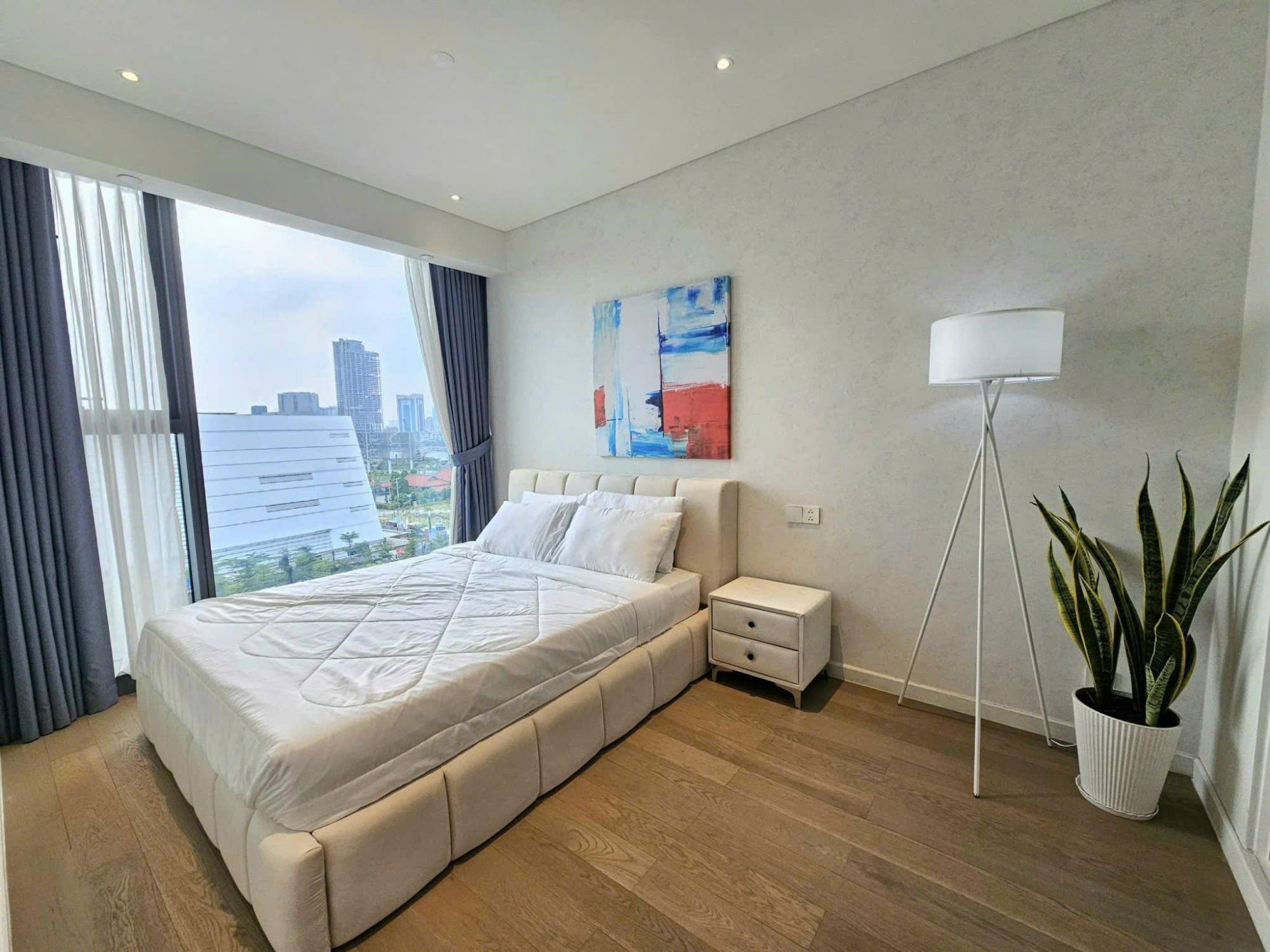 Hai phòng ngủ được bố trí riêng tư, cửa sổ lớn đón gió và ánh sáng. Nội thất được đầu tư đồng bộ, chất lượng cao, sẵn sàng vào ở ngay. Ban công view thoáng, không bị che chắn, tạo cảm giác rộng mở và thư giãn.