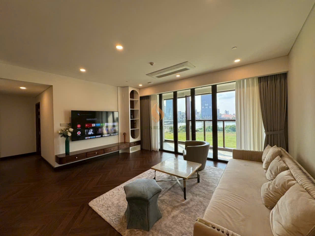 Diện tích 170m², thiết kế 4 phòng ngủ rộng rãi, bố trí hợp lý cho gia đình. Căn hộ được trang bị nội thất đầy đủ, phong cách hiện đại, có thể vào ở ngay. Phòng khách lớn kết nối ban công rộng, tận hưởng view sông thoáng và ánh sáng tự nhiên.