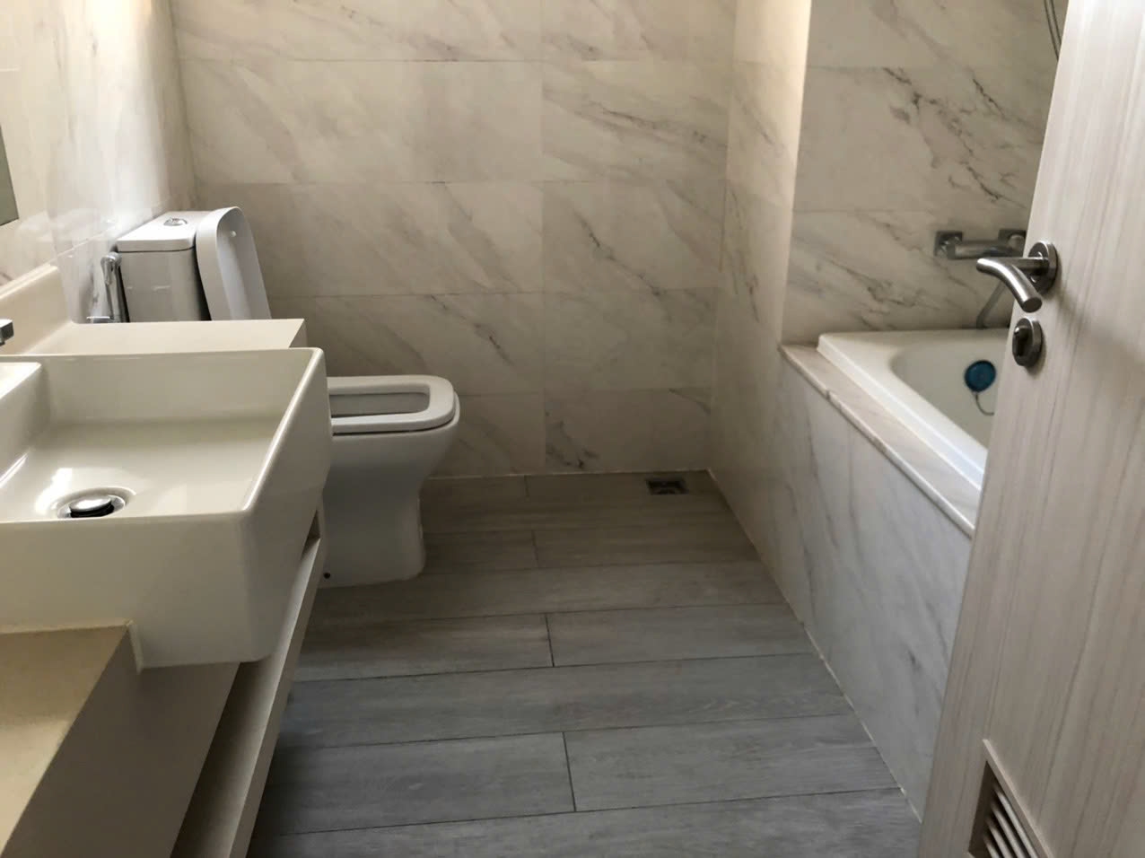 Toàn bộ căn hộ được trang bị đầy đủ nội thất hoàn chỉnh, phong cách trang nhã, sử dụng vật liệu chất lượng cao. Phòng ngủ master được bố trí bồn tắm nằm, mang lại trải nghiệm thư giãn như khách sạn cao cấp ngay tại nhà.