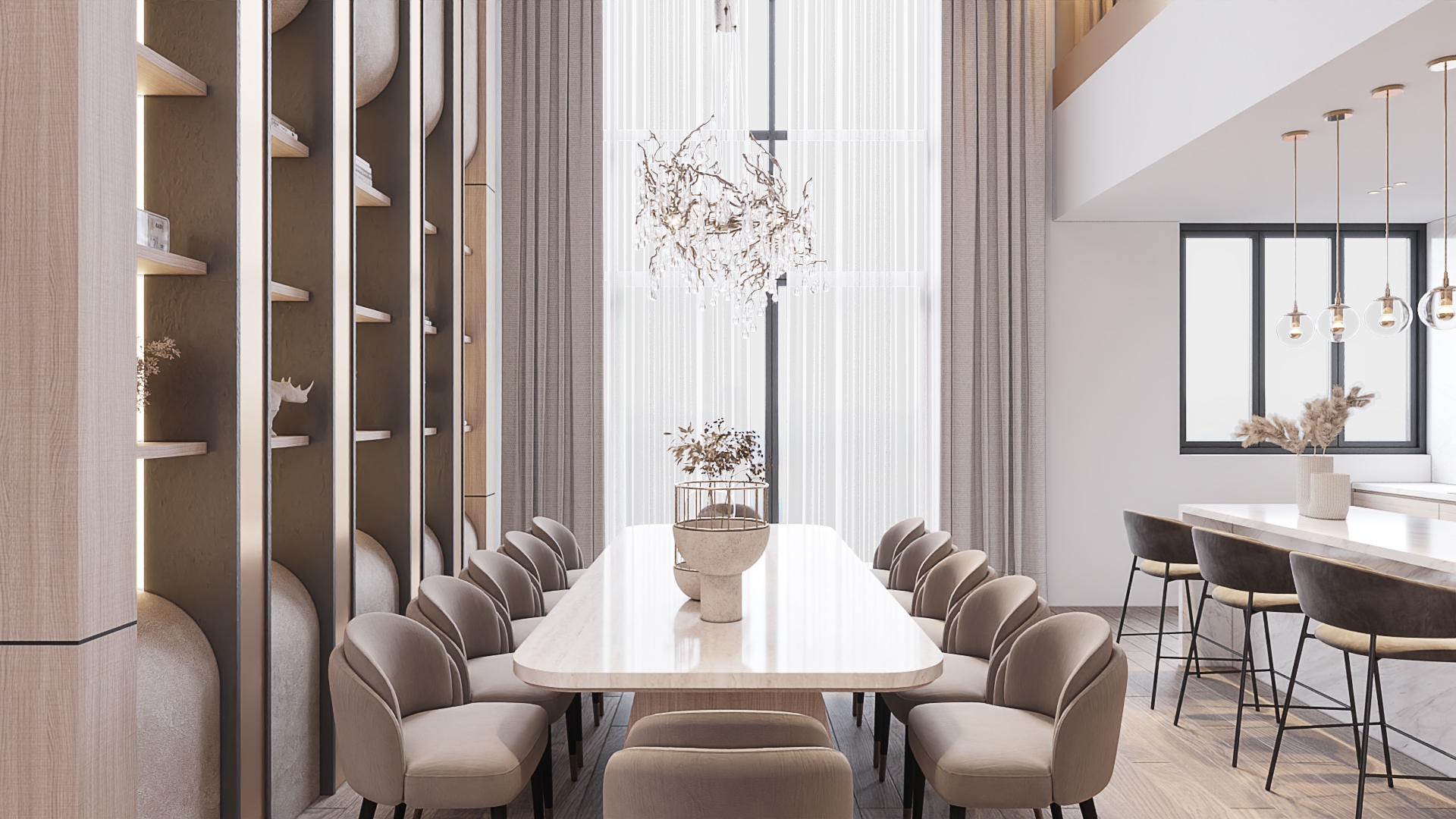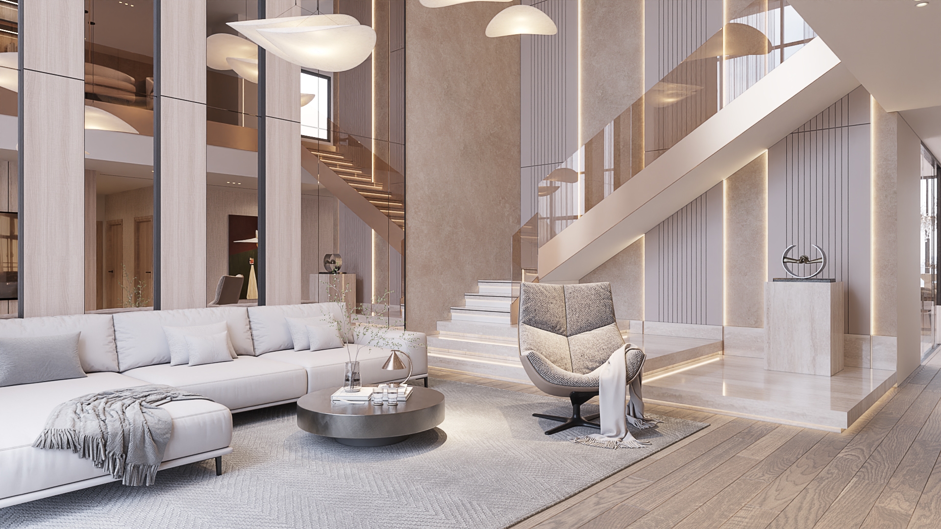 Căn hộ có diện tích xây dựng 432,2 m², diện tích sử dụng 374,3 m², bố cục được thiết kế tối ưu công năng với nhiều không gian sinh hoạt và nghỉ ngơi riêng biệt. Tổng thể căn hộ mang lại cảm giác như một biệt thự trên cao, vừa sang trọng vừa thoáng đãng.