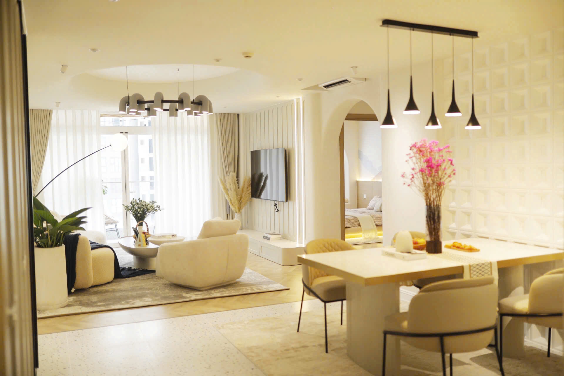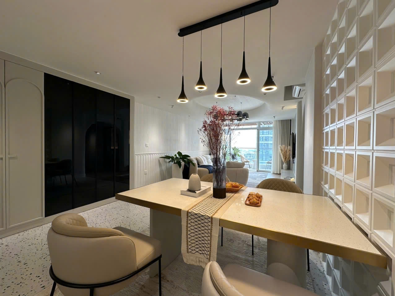 All three bedrooms are thoughtfully arranged to ensure privacy and comfort. Each room is fitted with 100% brand-new, high-quality furniture, including beds, premium mattresses, wardrobes, curtains, and lighting systems, delivering a luxurious living experience.