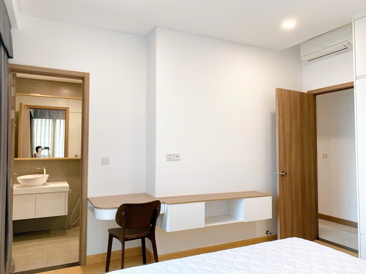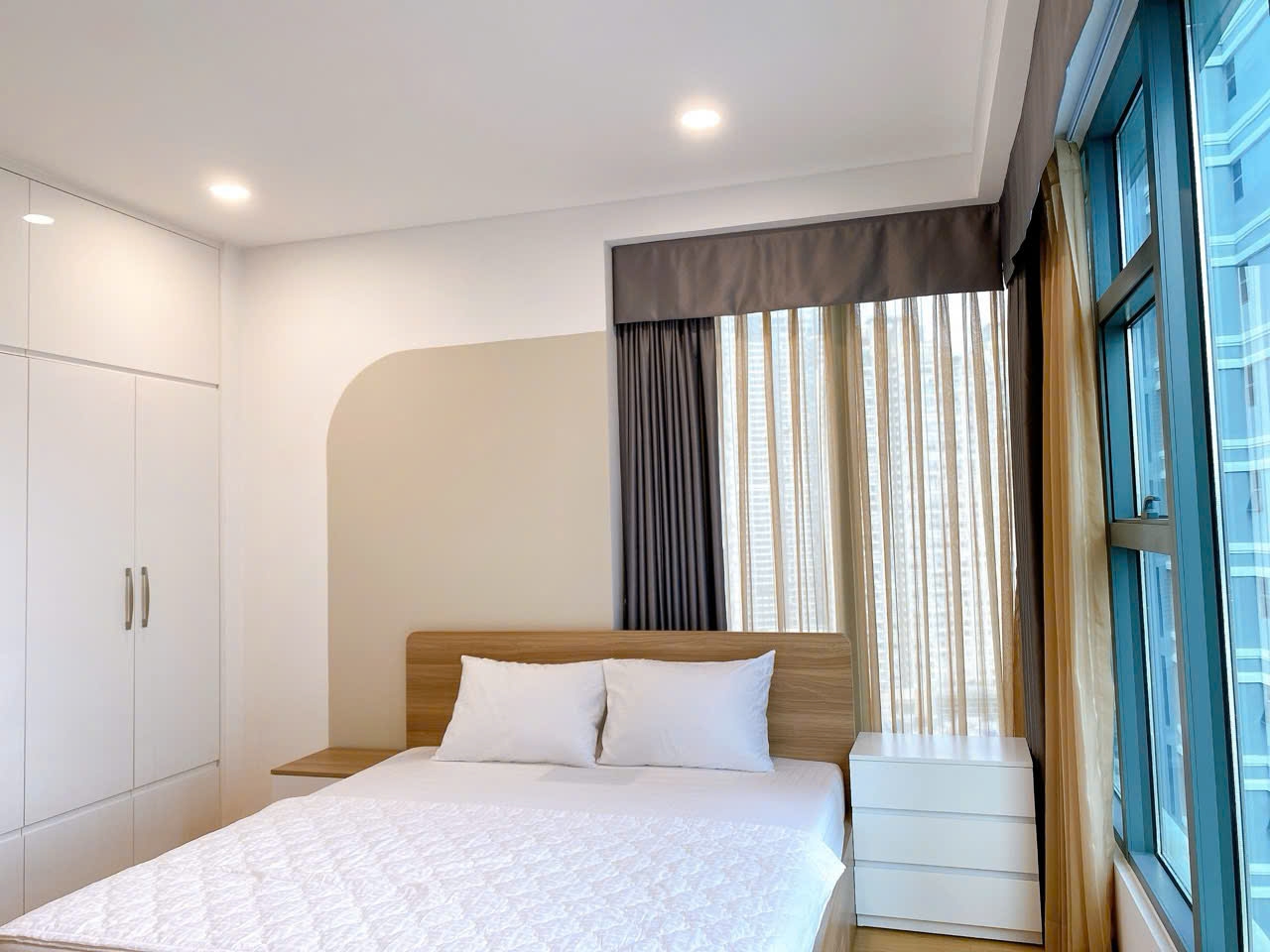 Hai phòng ngủ có diện tích hợp lý, bố trí tách biệt với không gian sinh hoạt chung nhằm đảm bảo riêng tư. Phòng ngủ chính có cửa sổ hướng sông, mang lại cảm giác thư thái. Phòng còn lại linh hoạt sử dụng làm phòng làm việc hoặc phòng cho trẻ nhỏ.