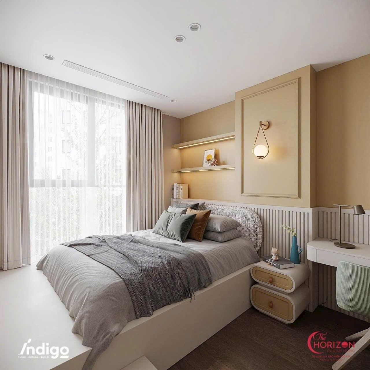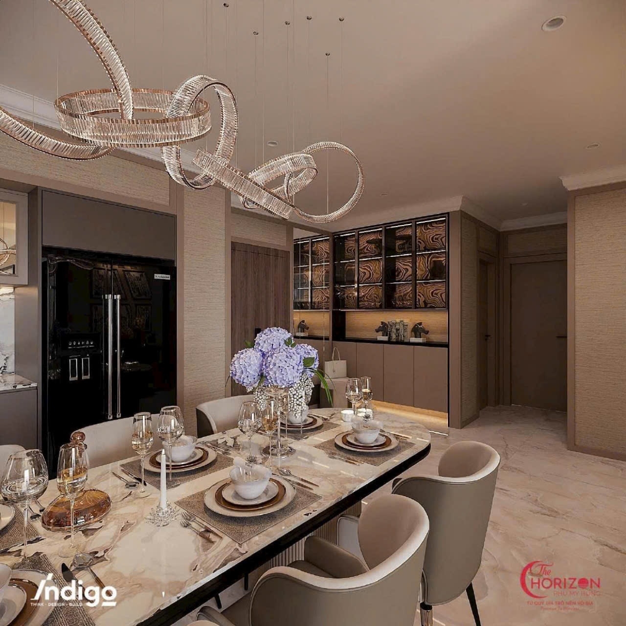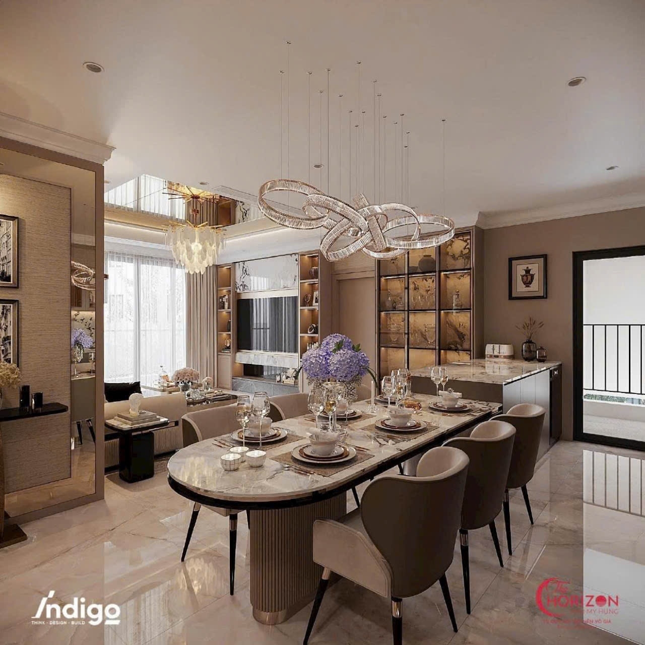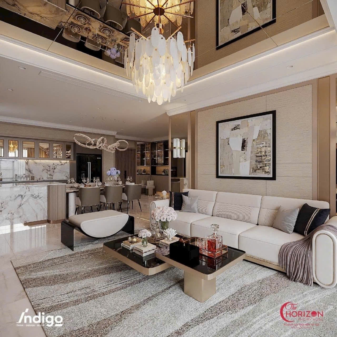 Căn hộ được trang bị full nội thất cao cấp, lựa chọn tỉ mỉ từ những thương hiệu uy tín quốc tế, mang đến không gian vừa thời thượng vừa đẳng cấp. Phòng khách rộng mở với trần cao và cửa kính lớn, đón trọn ánh sáng tự nhiên, kết hợp cùng phòng ăn và bếp sang trọng, tạo nên không gian sinh hoạt lý tưởng. Các phòng ngủ được thiết kế riêng tư, yên tĩnh, tối ưu hóa công năng, trong khi phòng tắm được hoàn thiện với vật liệu đá tự nhiên và trang thiết bị hiện đại, mang đến trải nghiệm nghỉ dưỡng ngay tại nhà.