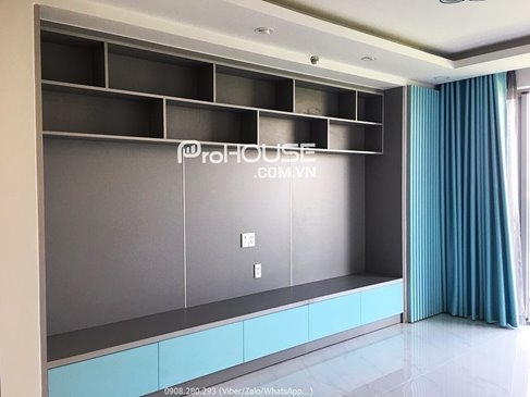 Căn hộ cho thuê có thiết kế hiện đại với đầy đủ nội thất màu sắc tươi sáng, ban công rộng và view đẹp.
