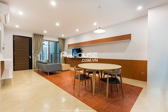 Căn hộ cho thuê độc đáo view sông tuyệt đẹp, có 2 phòng ngủ, 2 nhà vệ sinh, sân vườn rộng phía trước và ban công lớn trong phòng, bếp mở và giặt riêng.