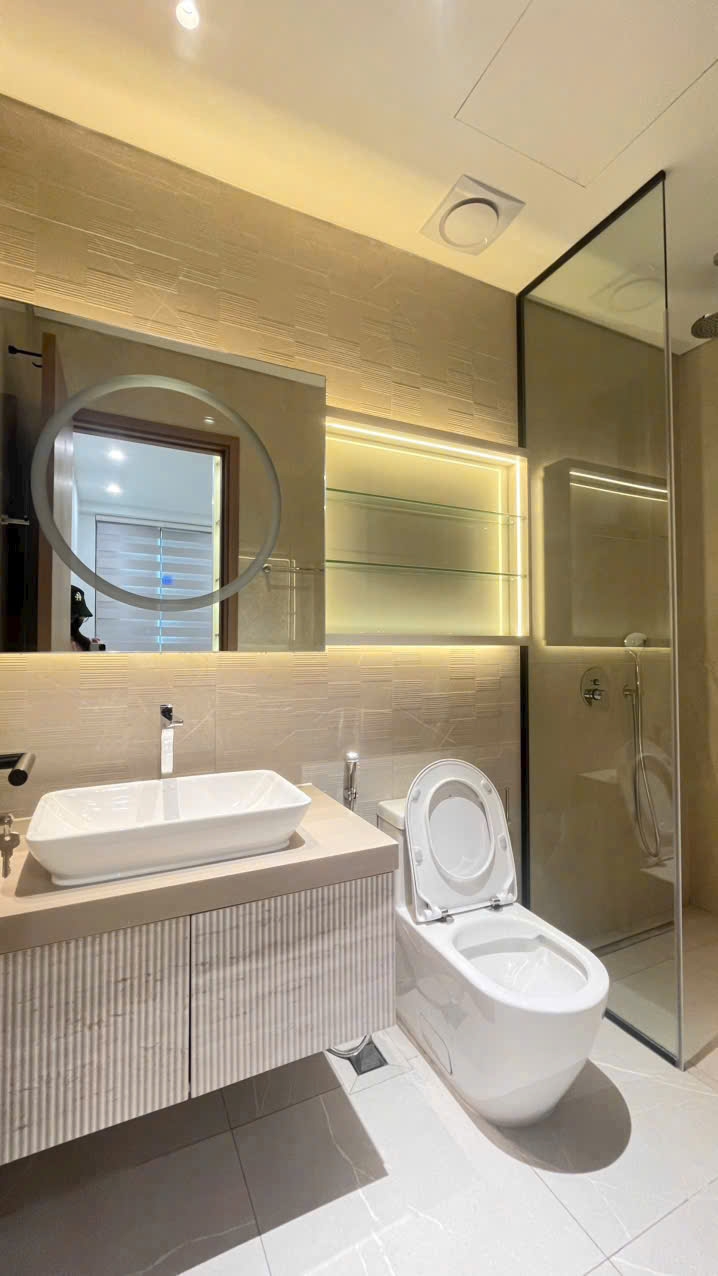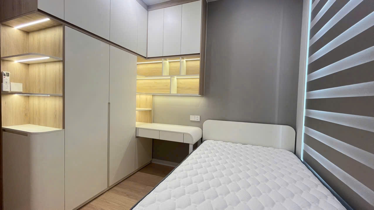 Phòng ngủ được thiết kế yên tĩnh và riêng tư, với cửa sổ lớn giúp căn phòng luôn tràn ngập ánh sáng tự nhiên. Phòng tắm được hoàn thiện với thiết bị vệ sinh hiện đại, mang lại cảm giác sạch sẽ và tiện nghi cho người sử dụng.