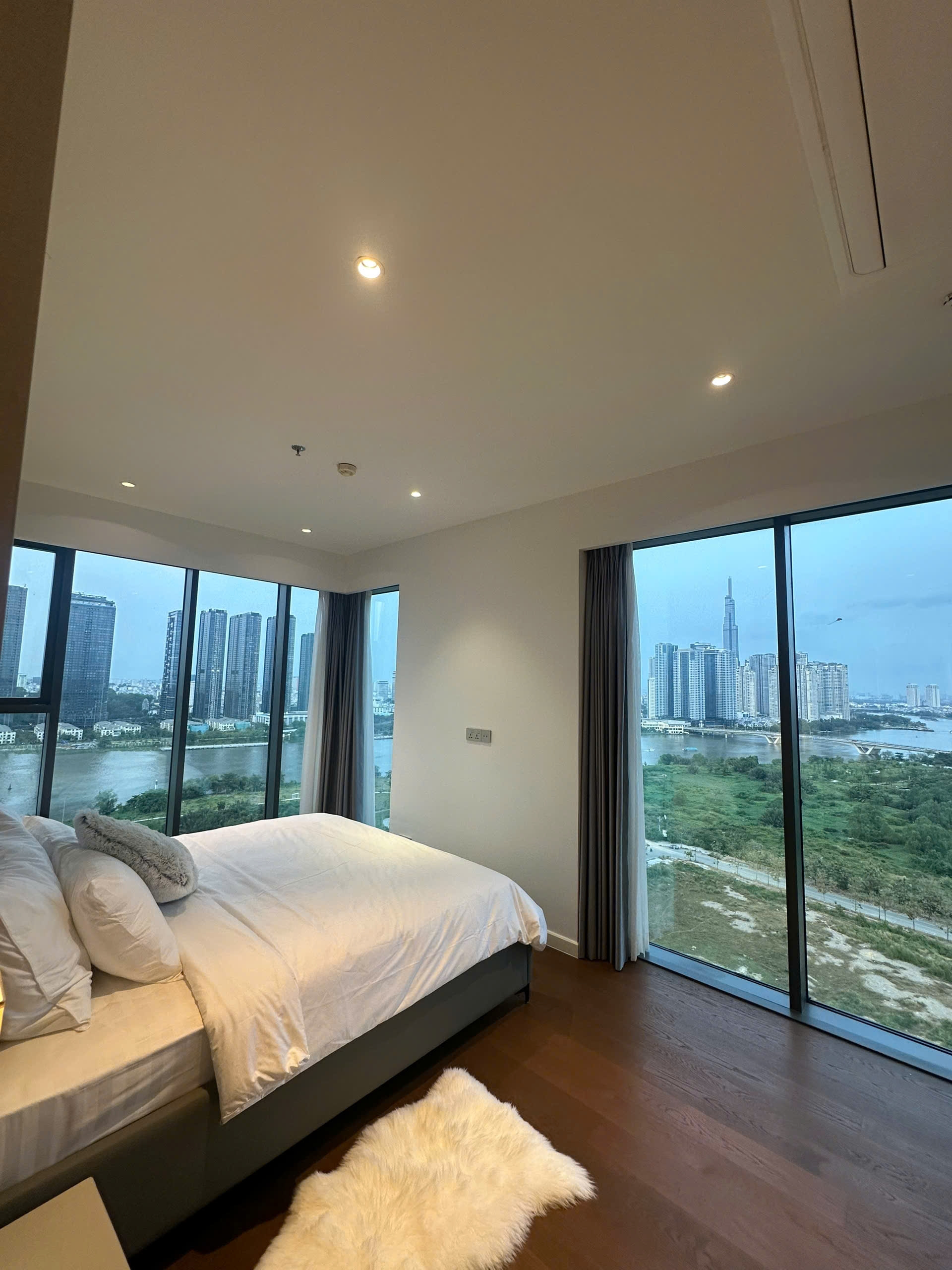 Căn hộ được trang bị nội thất cao cấp hoàn toàn, từ sofa, bàn ăn, giường ngủ đến hệ tủ bếp và thiết bị điện tử, tất cả đều được lựa chọn kỹ lưỡng theo phong cách hiện đại và thanh lịch. Các phòng ngủ rộng rãi, nhiều ánh sáng tự nhiên, mang lại cảm giác thư giãn và thoải mái. Ban công hướng sông với tầm nhìn thoáng đãng, mang đến không gian sống yên tĩnh và đẳng cấp.