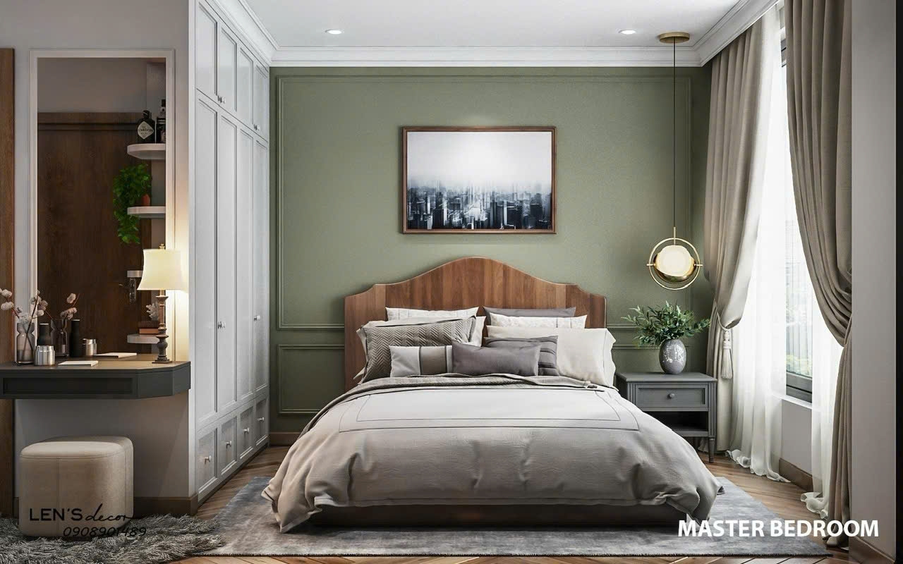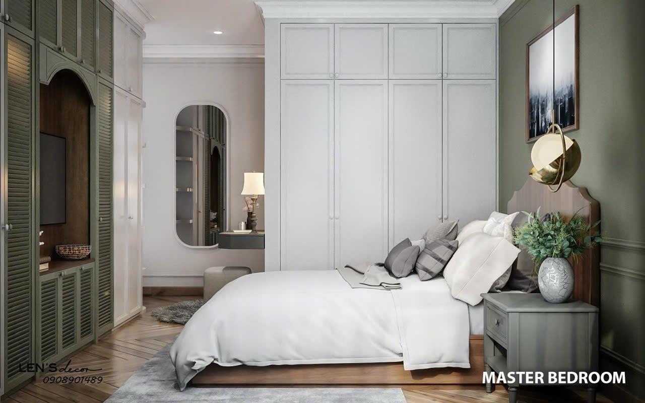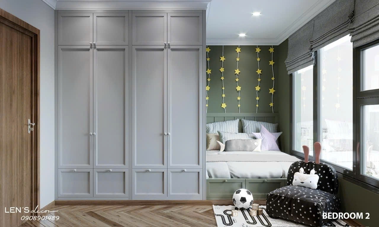 Ba phòng ngủ được sắp xếp hợp lý, đảm bảo sự riêng tư cho từng thành viên trong gia đình. Phòng ngủ master rộng rãi, trang bị giường, tủ quần áo và nội thất đồng bộ, tạo cảm giác thư giãn tuyệt đối. Các phòng ngủ còn lại phù hợp làm phòng cho con, phòng làm việc hoặc phòng khách.