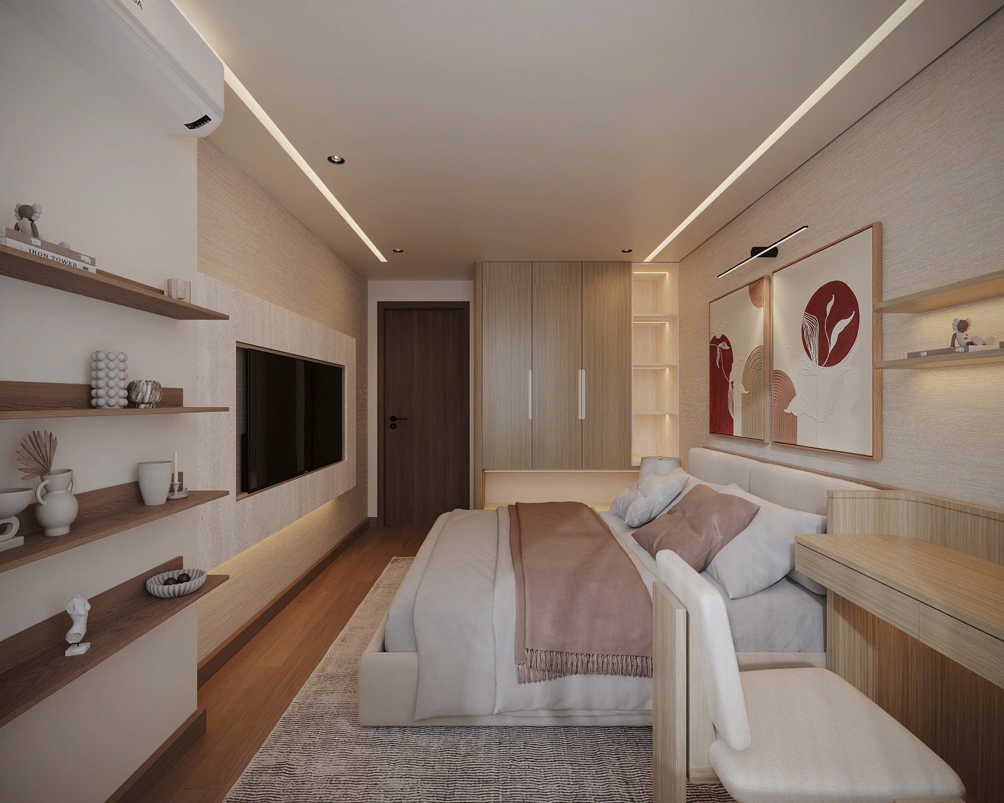 Căn hộ gồm 3 phòng ngủ riêng biệt, trong đó phòng ngủ master rộng rãi với nhà vệ sinh khép kín. Các phòng đều được trang bị đầy đủ giường, tủ, máy lạnh và rèm cửa cao cấp. Khu bếp hiện đại với đầy đủ thiết bị điện tử, phù hợp cho khách thuê ở lâu dài.
