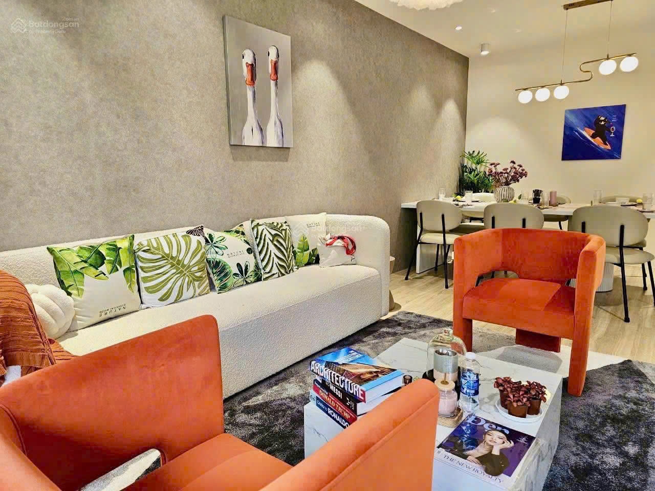 Căn hộ được thiết kế theo phong cách hiện đại – tinh tế – ấm cúng, với trần cao và không gian mở đặc trưng của loại hình duplex, mang lại cảm giác rộng rãi và khác biệt so với căn hộ thông thường. Phòng khách lớn kết nối trực tiếp với khu vực bàn ăn, tạo nên không gian sinh hoạt chung sang trọng, rất phù hợp cho tiếp khách hoặc sinh hoạt gia đình.