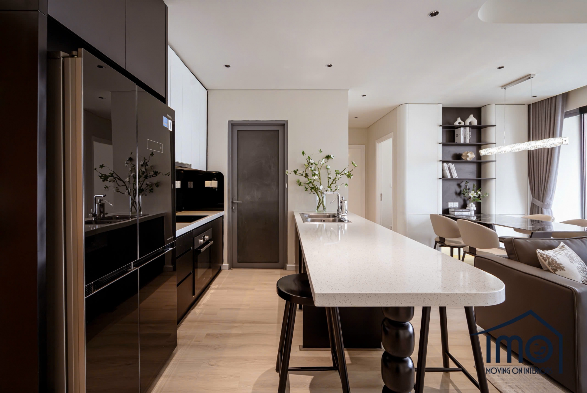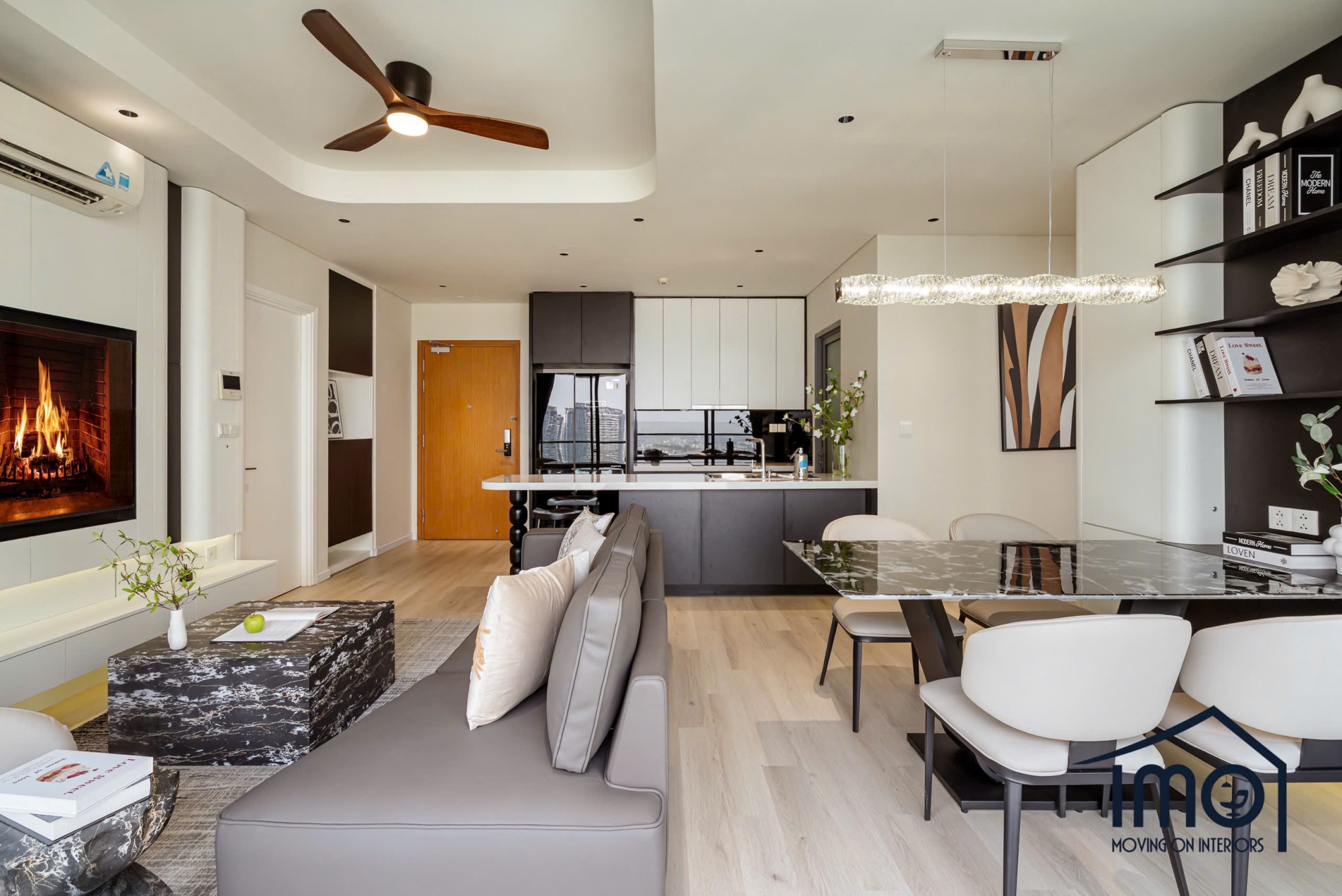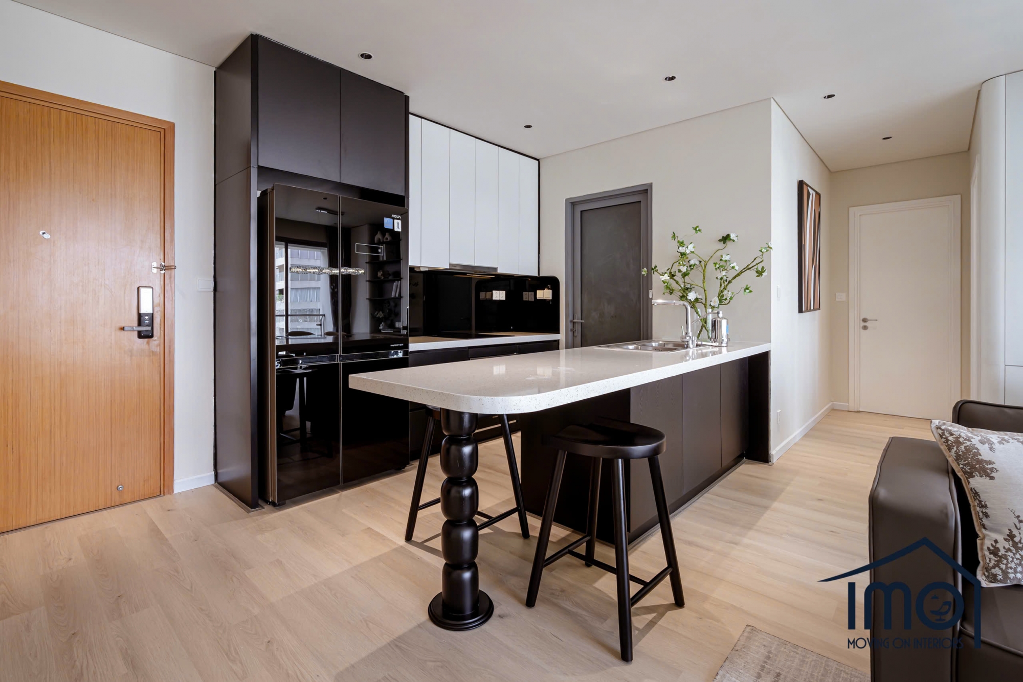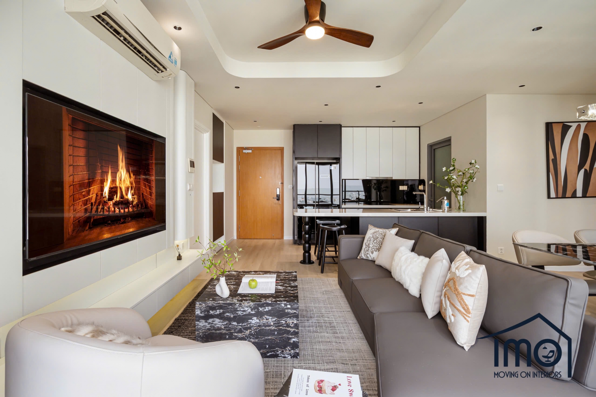 Toàn bộ nội thất được trang bị mới 100%, theo phong cách hiện đại với tông màu trang nhã, đường nét tinh gọn và vật liệu chất lượng. Phòng khách rộng rãi, đón nhiều ánh sáng tự nhiên nhờ hệ cửa kính lớn và ban công thoáng mát. Khu bếp được hoàn thiện đầy đủ thiết bị, thuận tiện cho sinh hoạt hằng ngày. Phòng ngủ yên tĩnh, thoải mái; phòng tắm sạch sẽ, thiết kế gọn gàng và tiện nghi.