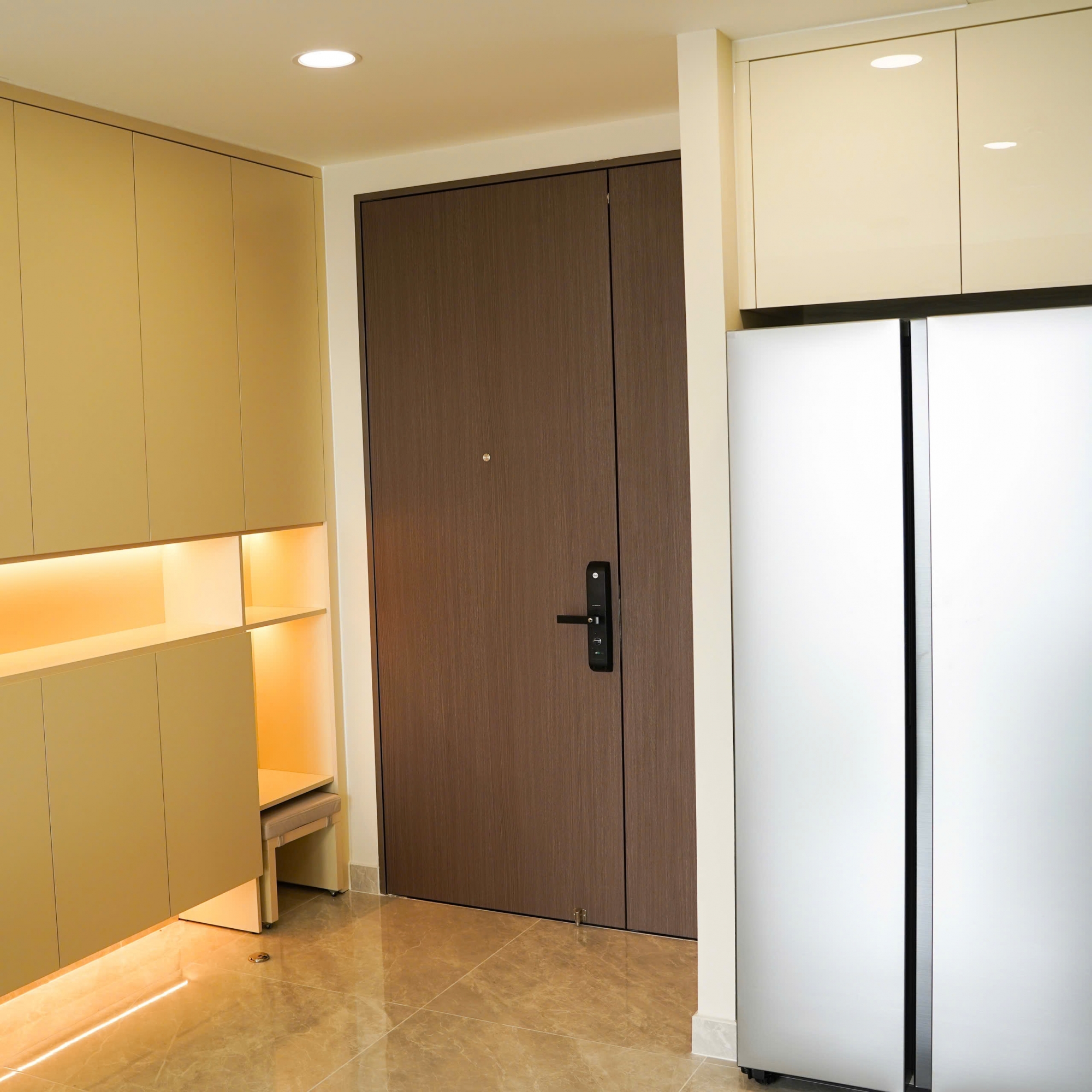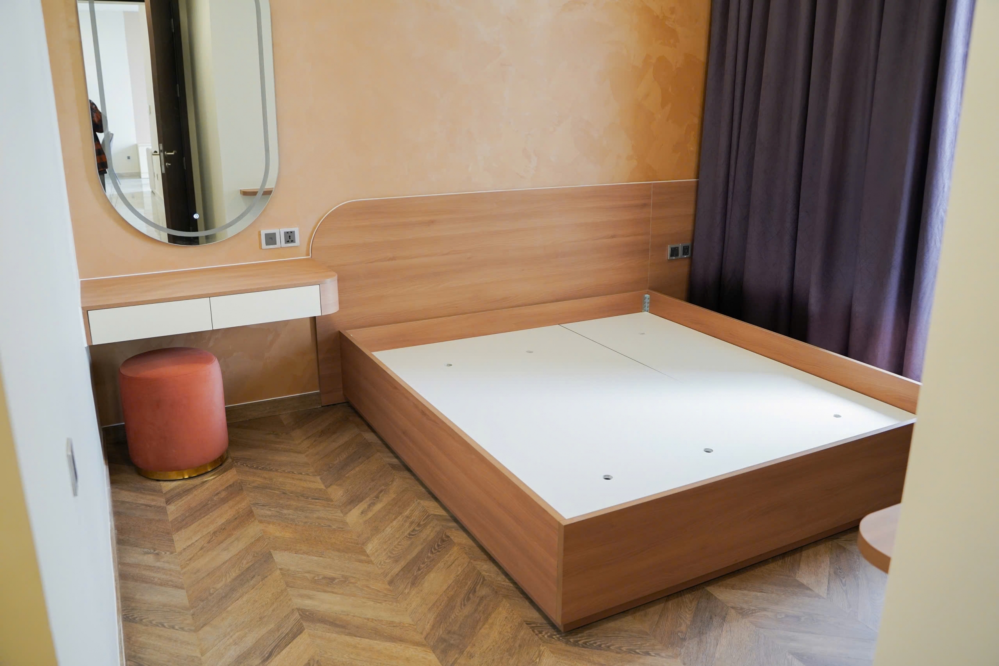 Nội thất được trang bị đầy đủ, phong cách hiện đại, tông màu trung tính trang nhã. Phòng ngủ bố trí hợp lý, đảm bảo sự riêng tư và thoải mái. Đặc biệt, căn hộ có ô đậu xe riêng, mang lại sự thuận tiện tối đa cho cư dân.