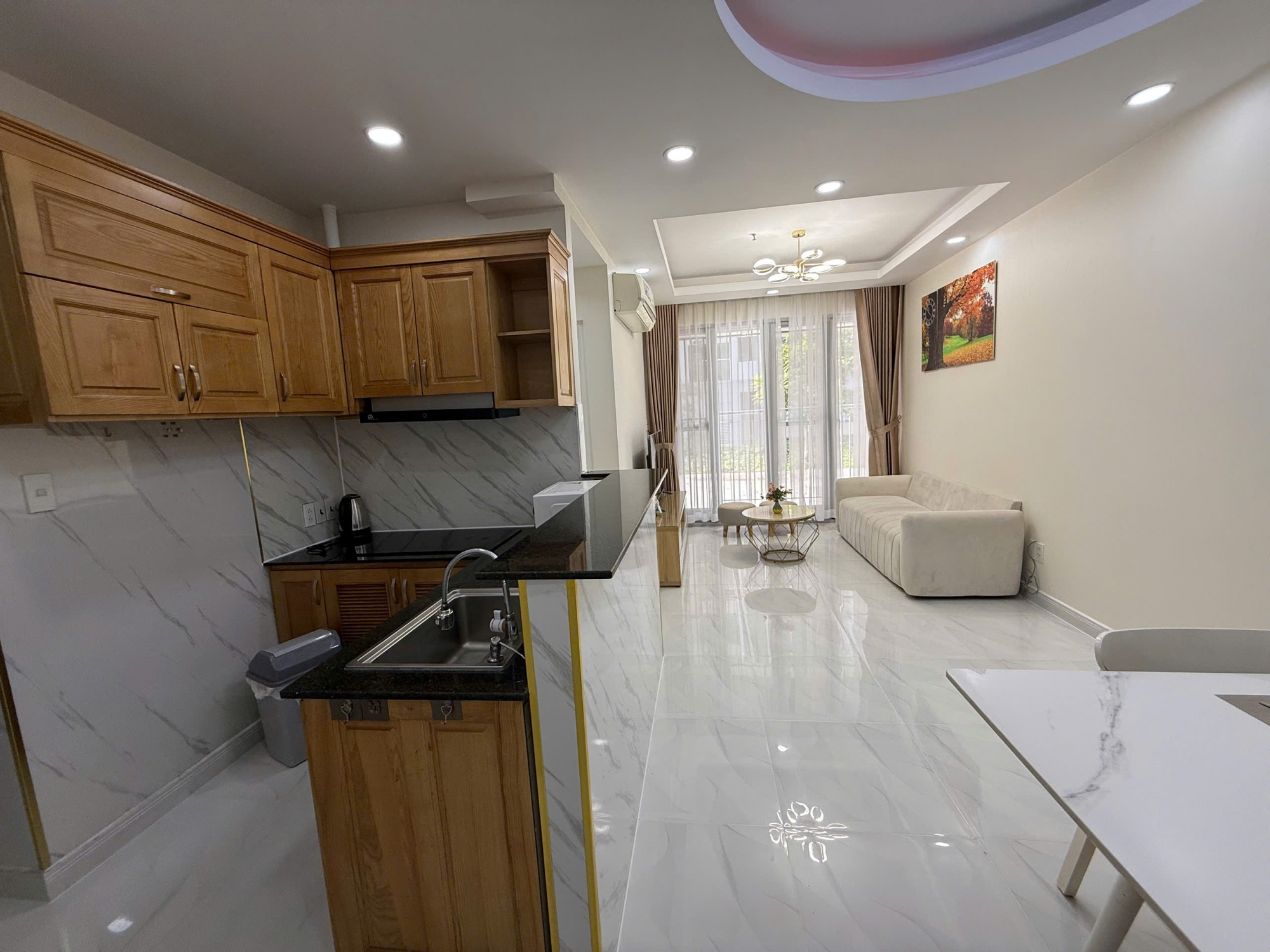 Toàn bộ căn hộ đã được trang bị đầy đủ nội thất, phong cách trang nhã, màu sắc trung tính, dễ sử dụng. Bếp gọn gàng với thiết bị cần thiết, phòng ngủ yên tĩnh, riêng tư, sẵn sàng dọn vào ở ngay mà không cần sắm thêm.