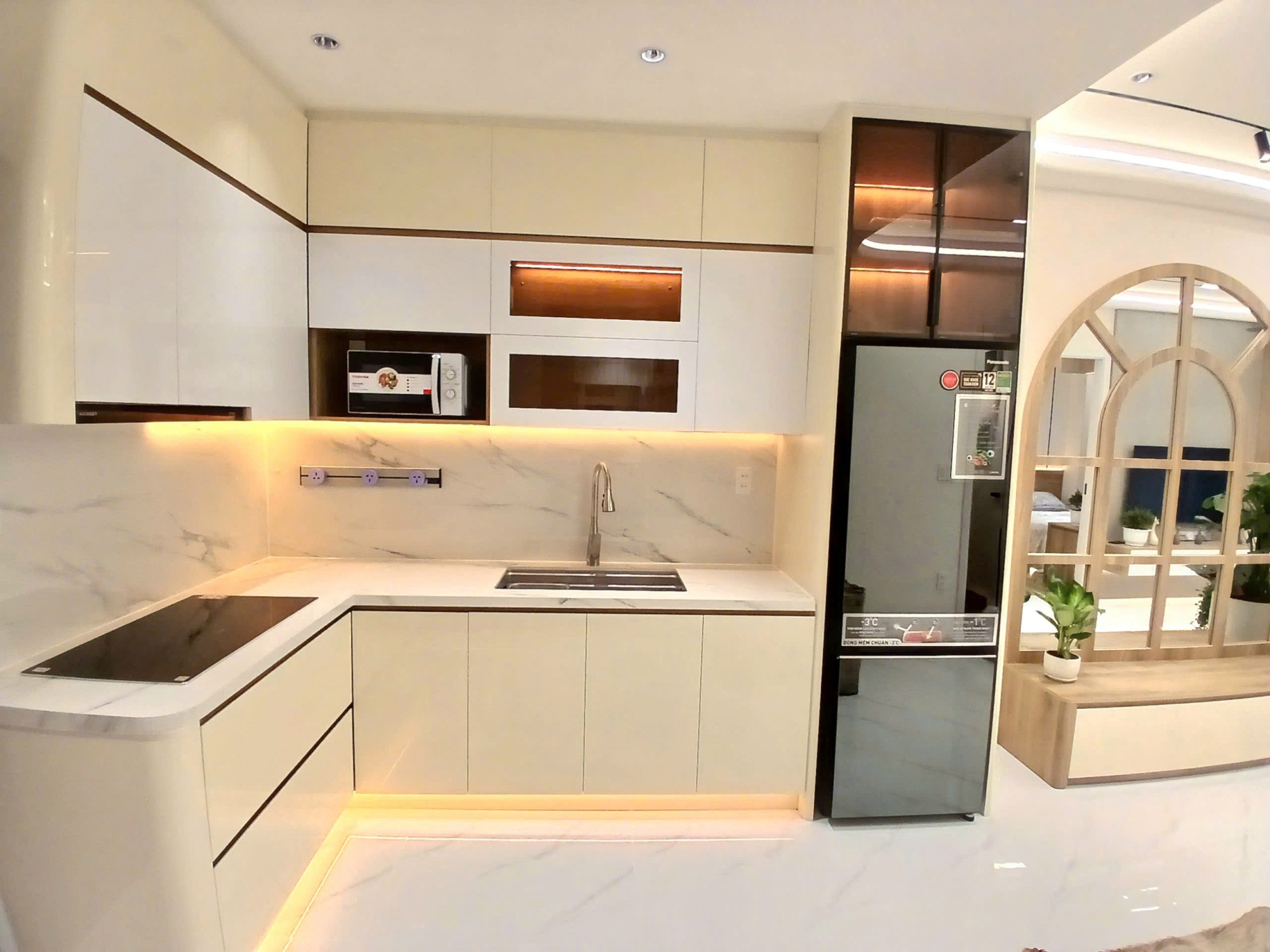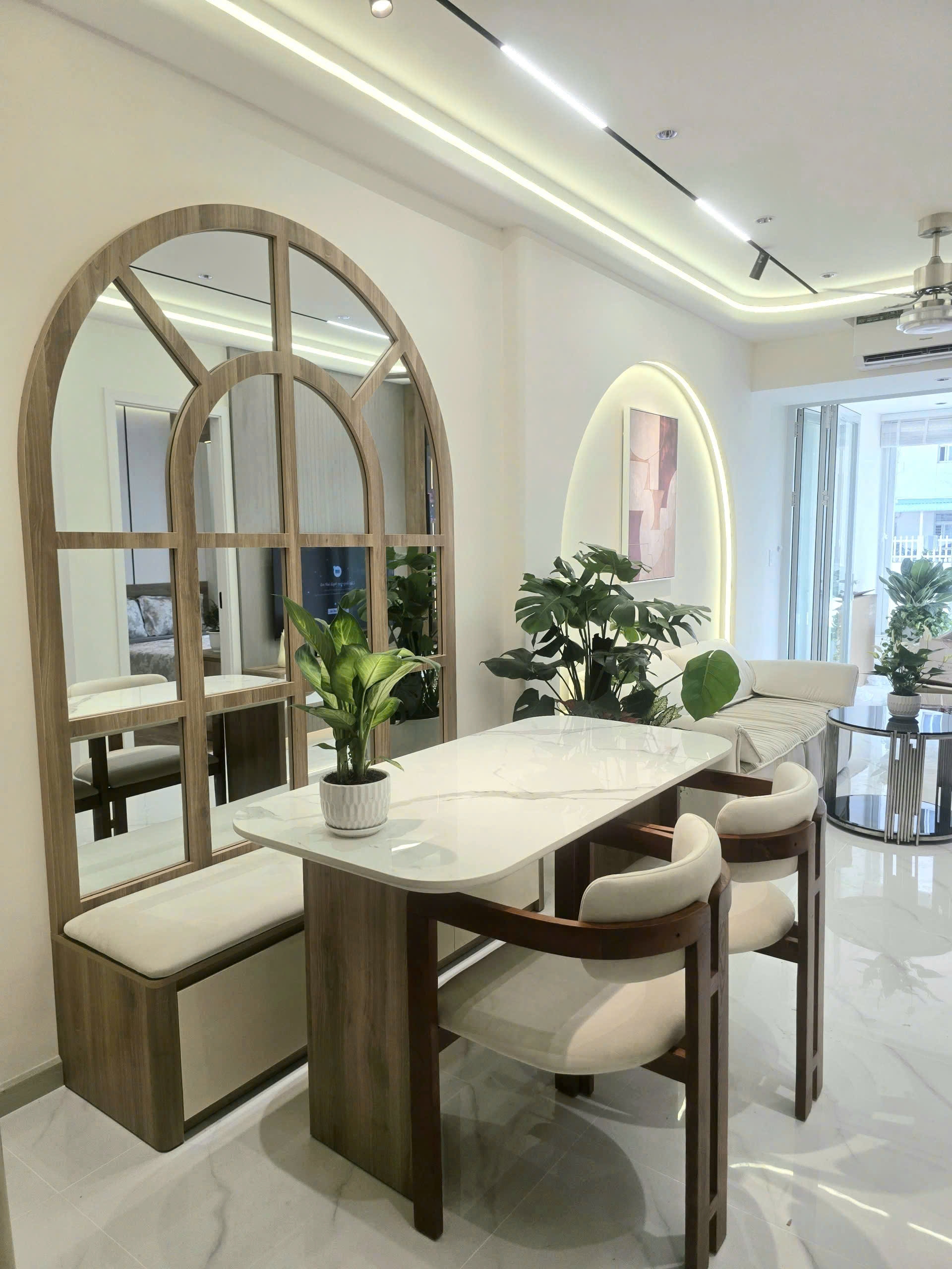 Căn hộ được thiết kế với 2 phòng ngủ và 2 phòng tắm, bố cục hợp lý, tối ưu công năng sử dụng. Không gian phòng khách rộng rãi, kết nối hài hòa với khu bếp và bàn ăn, tạo cảm giác thoáng đãng và ấm cúng. Điểm nổi bật của căn hộ là phong cách decor đẹp, tinh tế, sử dụng gam màu trung tính hiện đại, mang lại cảm giác sang trọng và dễ chịu ngay từ lần đầu bước vào.