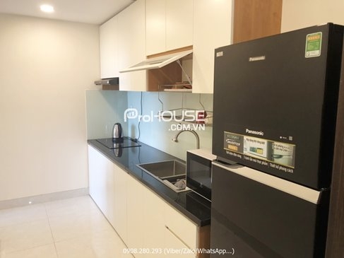 Căn hộ có 2 phòng ngủ, 2 vệ sinh, phòng khách có ban công, giặt là, bếp thoáng.