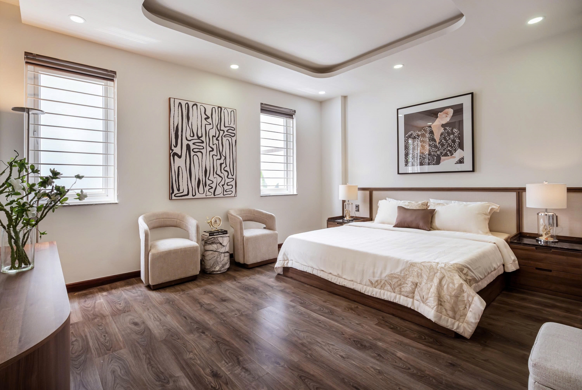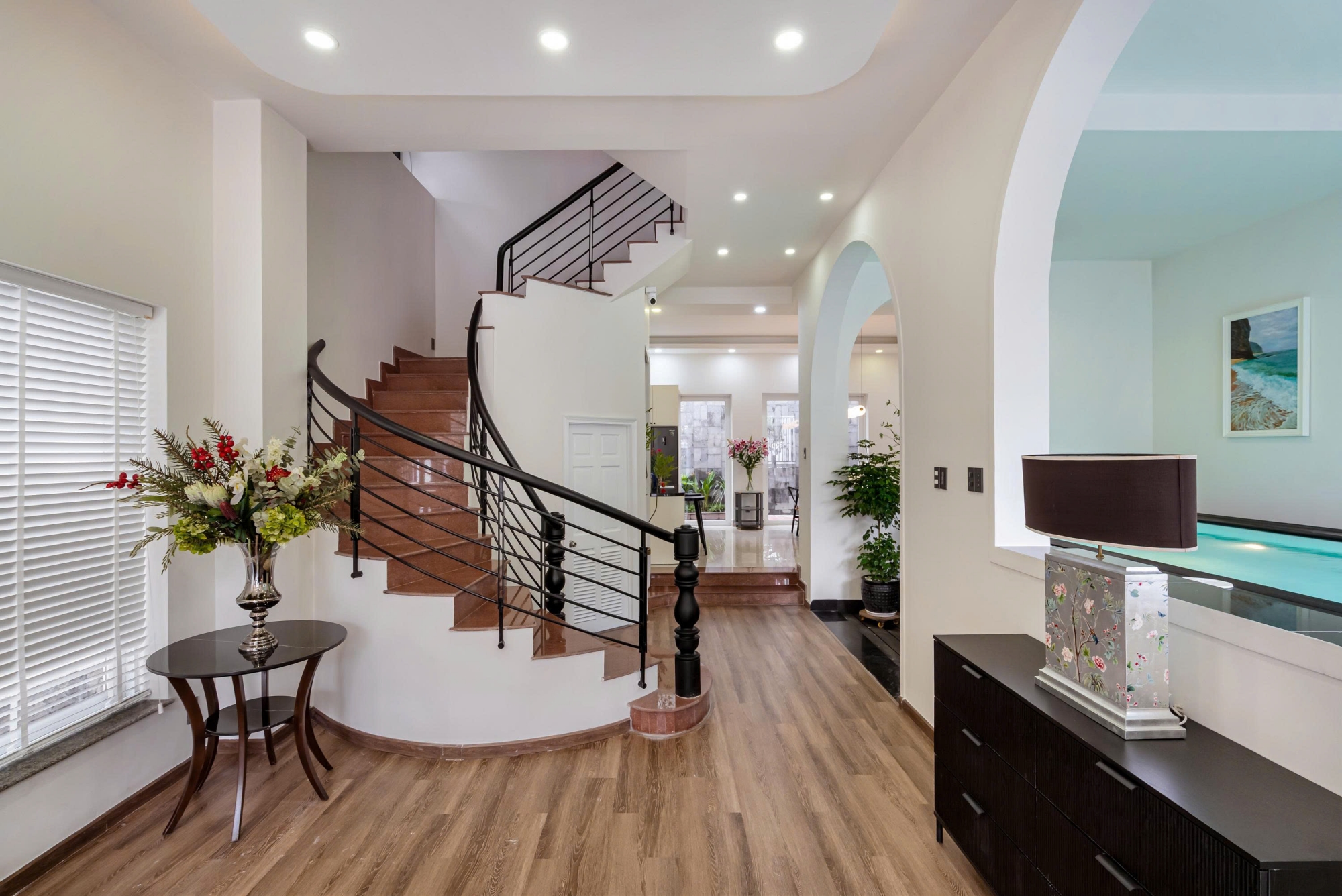 Căn nhà có 7 phòng ngủ và 6 phòng tắm, trang bị hồ bơi riêng và phòng sauna, mang lại trải nghiệm nghỉ dưỡng ngay tại nhà. Không gian phù hợp để ở kết hợp làm văn phòng, hoặc thuê dài hạn cho gia đình đông người.