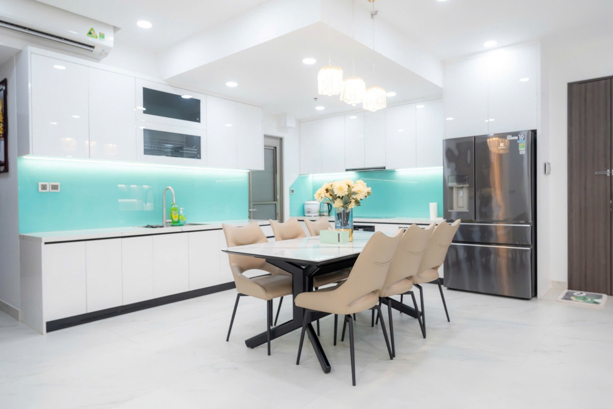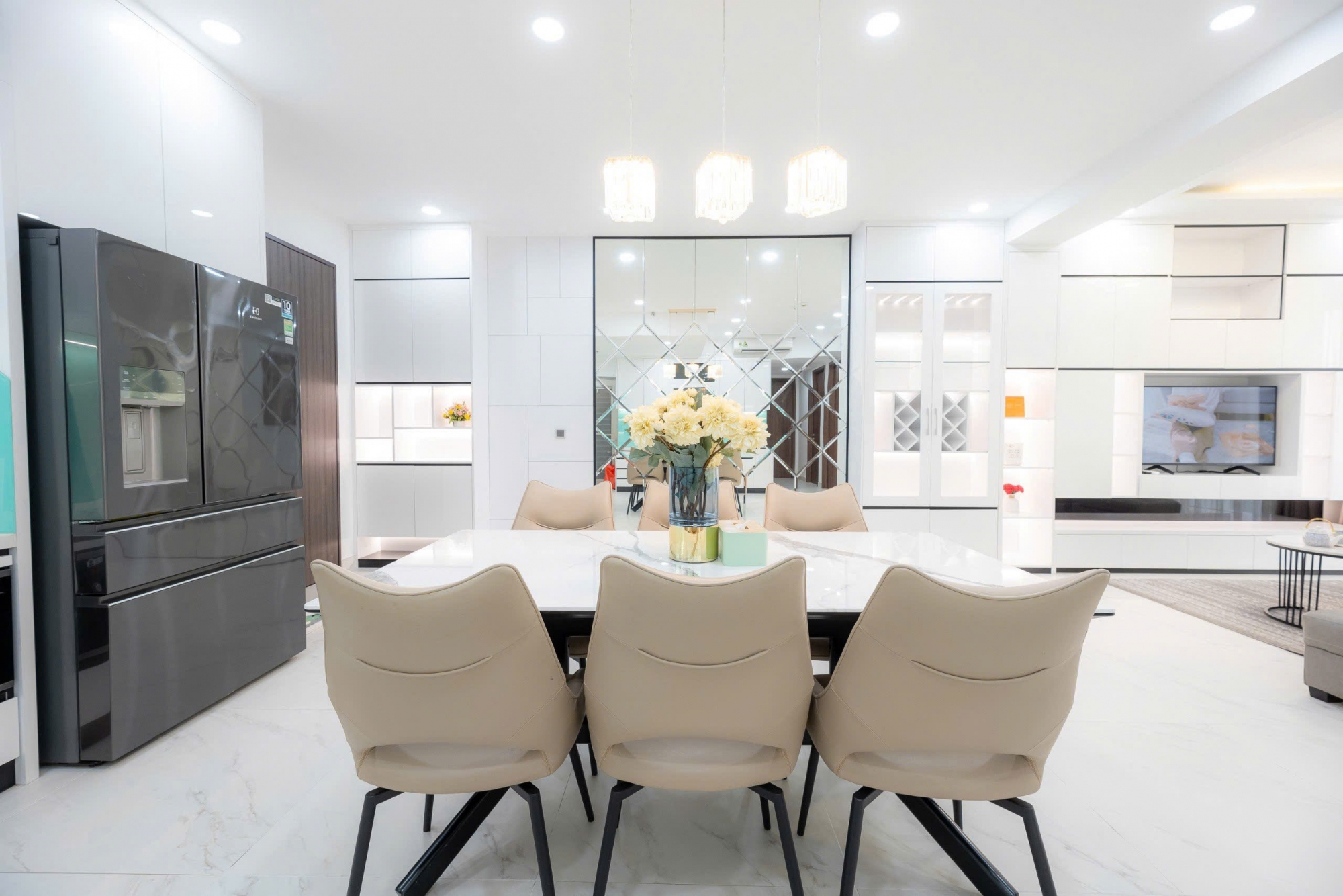 The apartment comes fully furnished with modern, elegant interiors. The open-plan living room seamlessly connects with the dining area and kitchen, creating a bright and comfortable living environment. Every detail has been carefully designed to ensure both style and functionality.